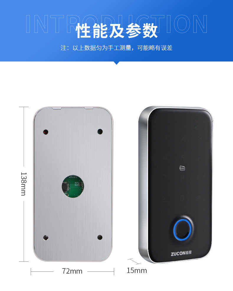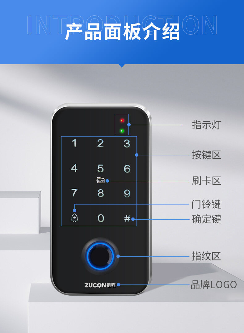 ZUCON祖程F2室外防水門禁系統一體機指紋鎖刷卡讀卡器主機IDIC讀頭