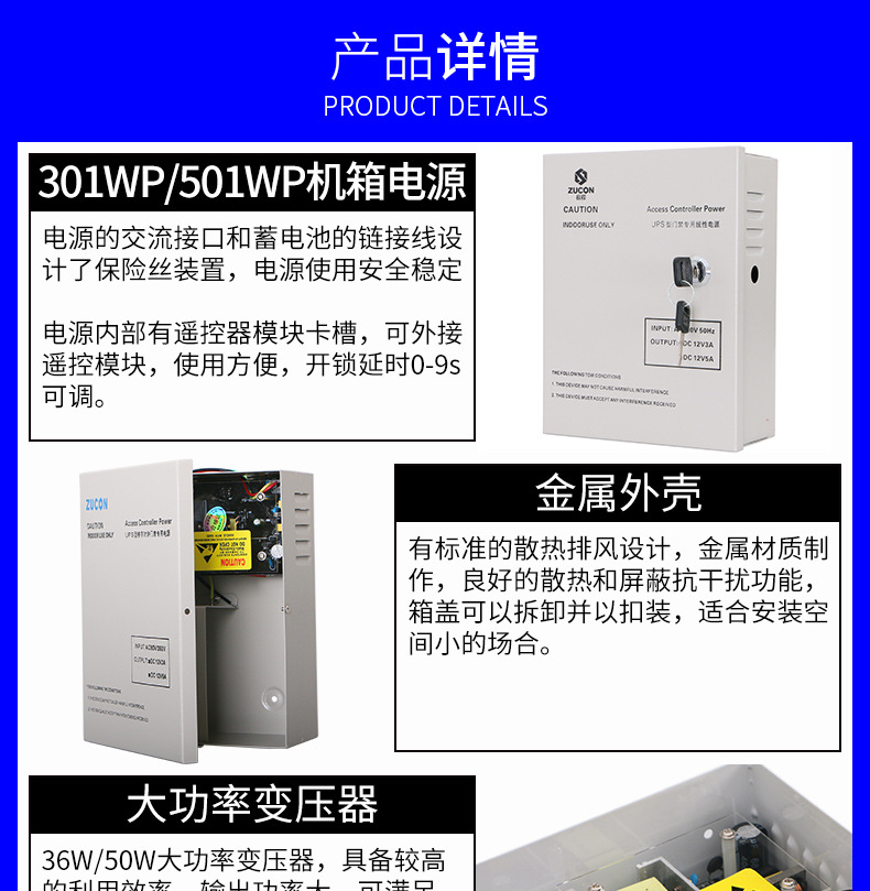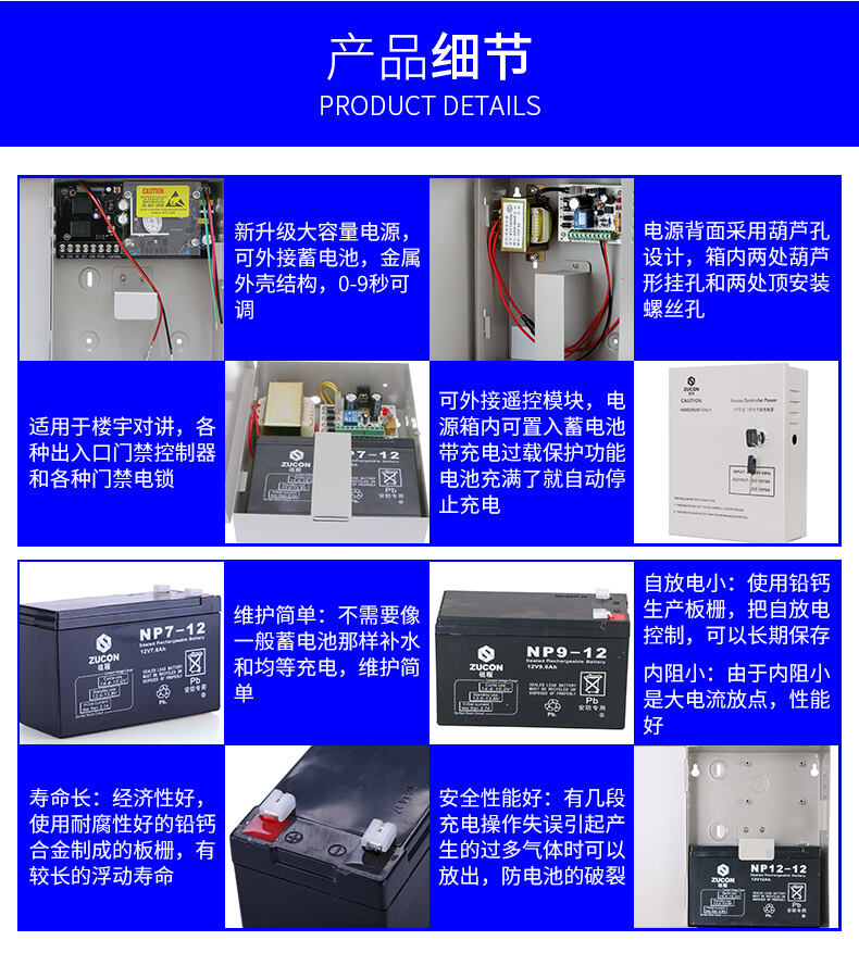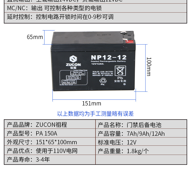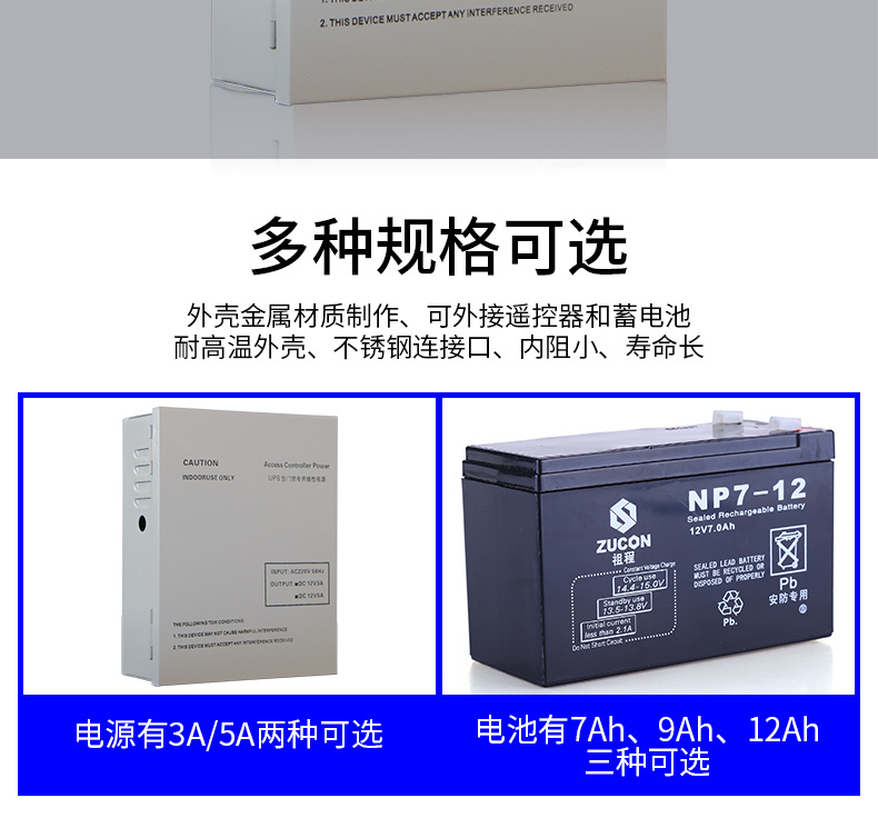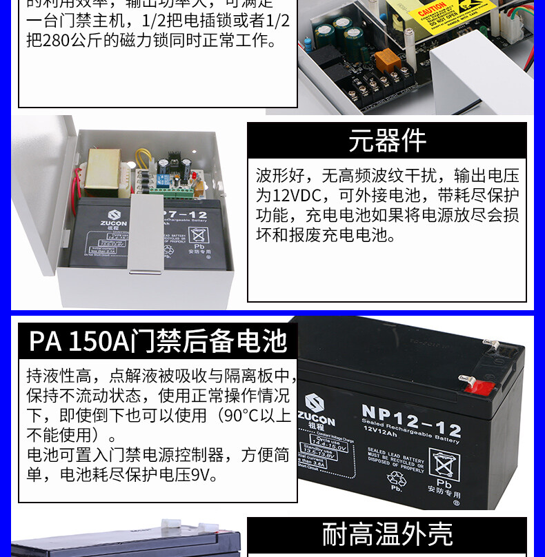 ZUCON祖程門禁后備電源12v5a門禁電源控制器12v3a專用儲備電源ups