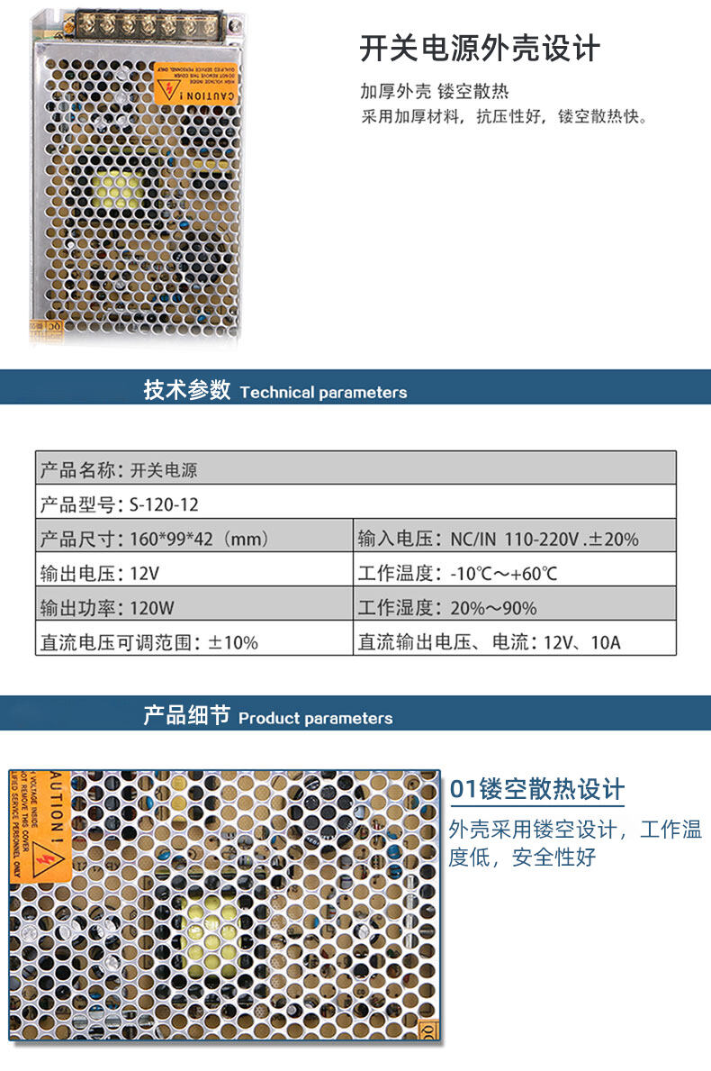 ZUCON祖程S-120-12開關(guān)電源門鎖電源 磁力鎖電插鎖12V10A 120W電源