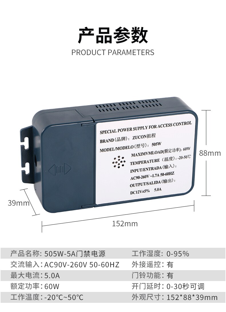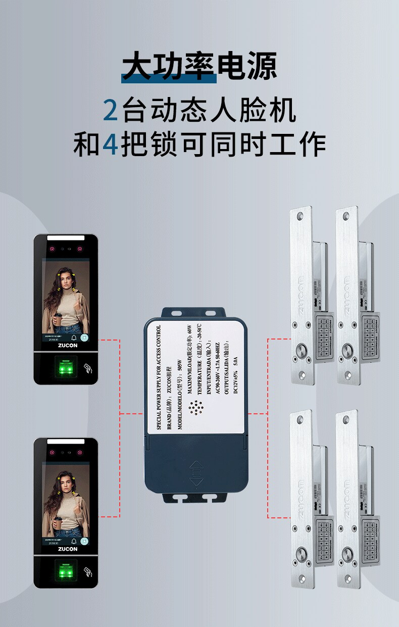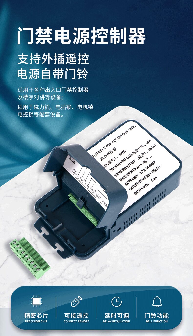 ZUCON祖程505W門禁系統開關電源12V3A5A控制器門禁套裝人臉控制電源