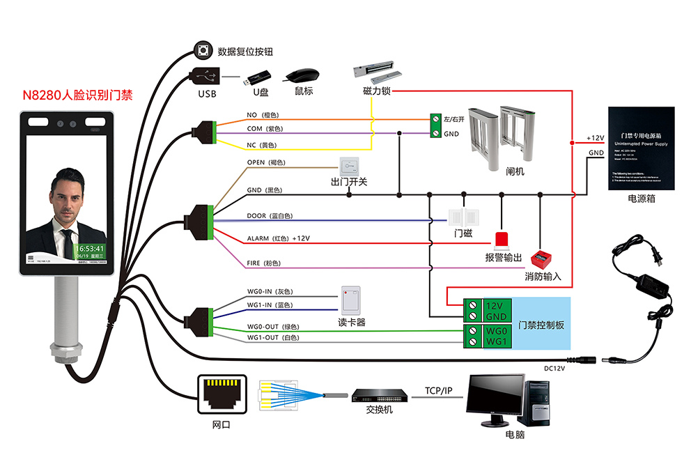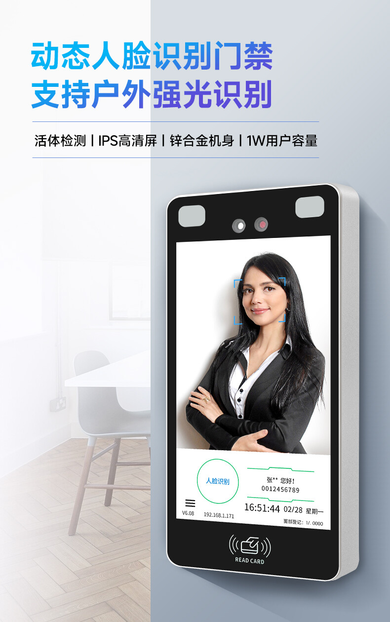 ZUCON祖程N8100動態人臉識別門禁一體機辦公室玻璃門考勤門禁系統門禁機套裝