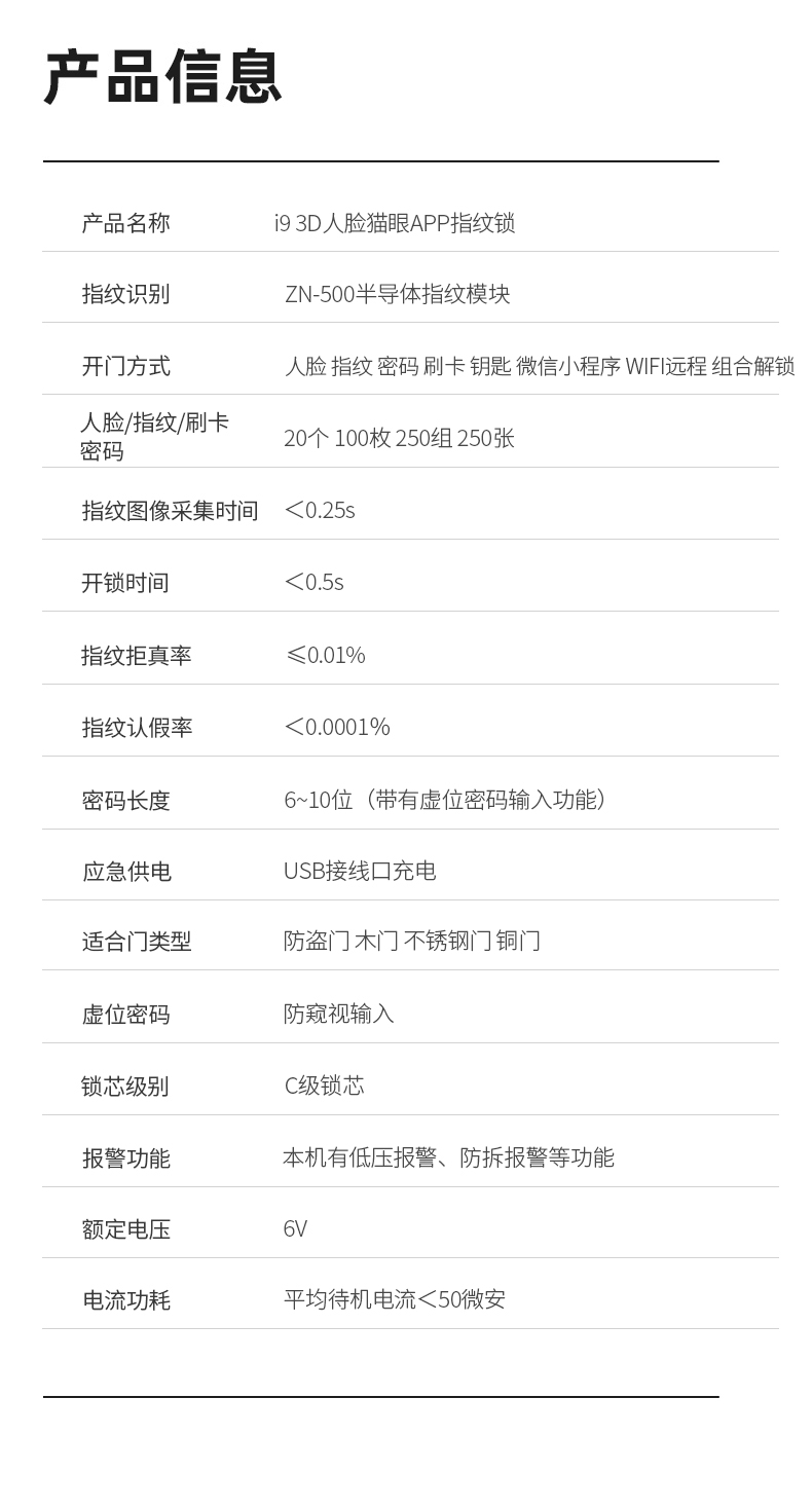 ZUCON祖程i9指紋鎖家用防盜門智能鎖電子貓眼密碼鎖wifi人臉識別門鎖