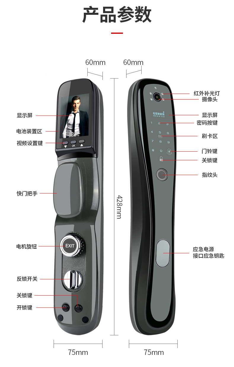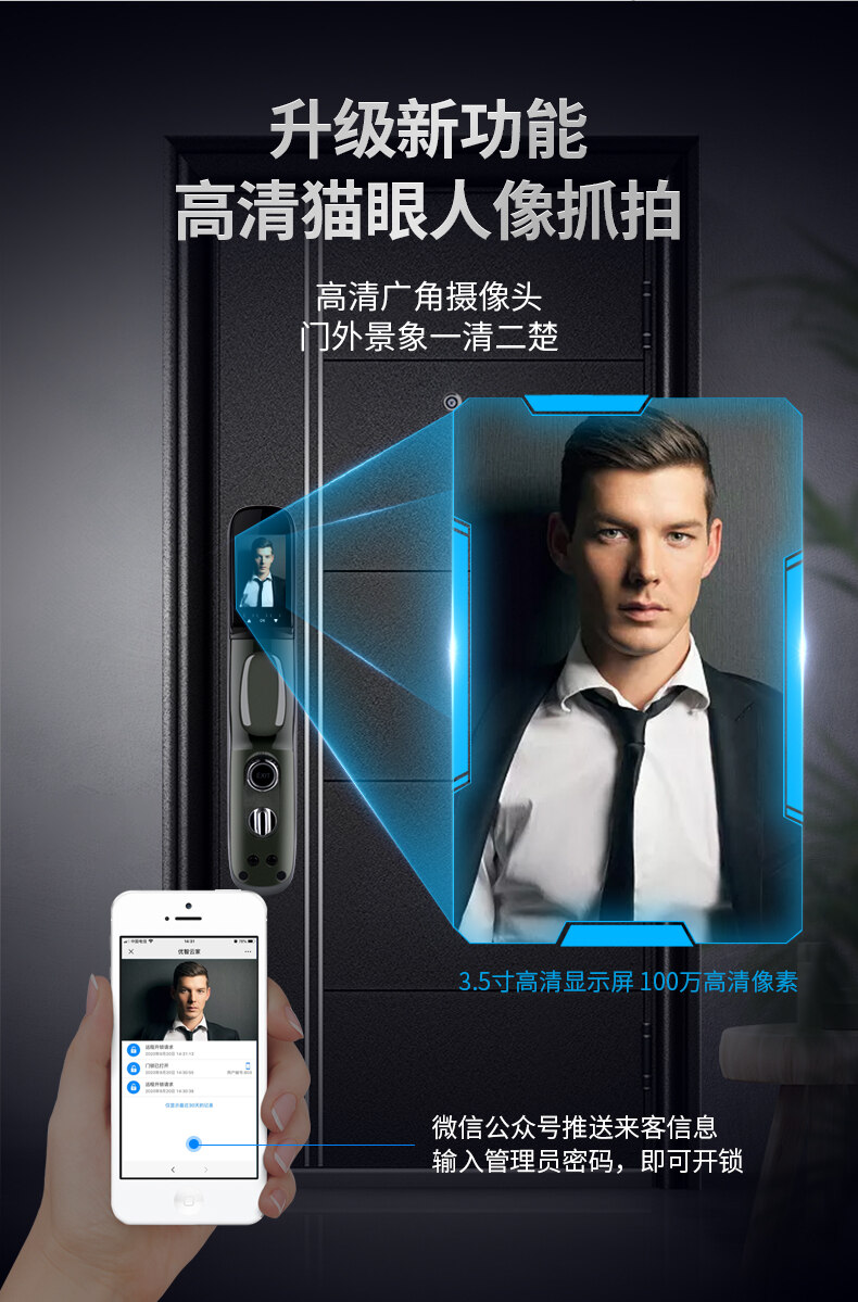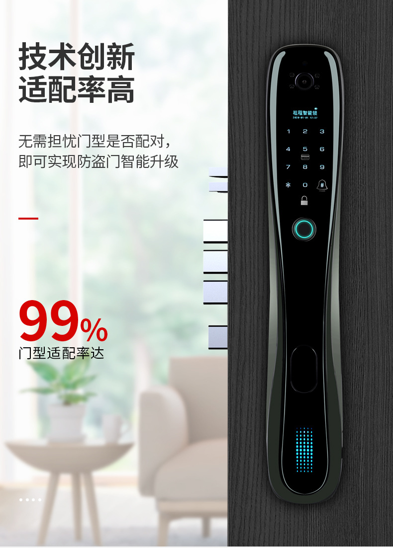 ZUCON祖程F793P指紋鎖家用防盜門智能電子門鎖密碼鎖帶電子貓眼攝像頭