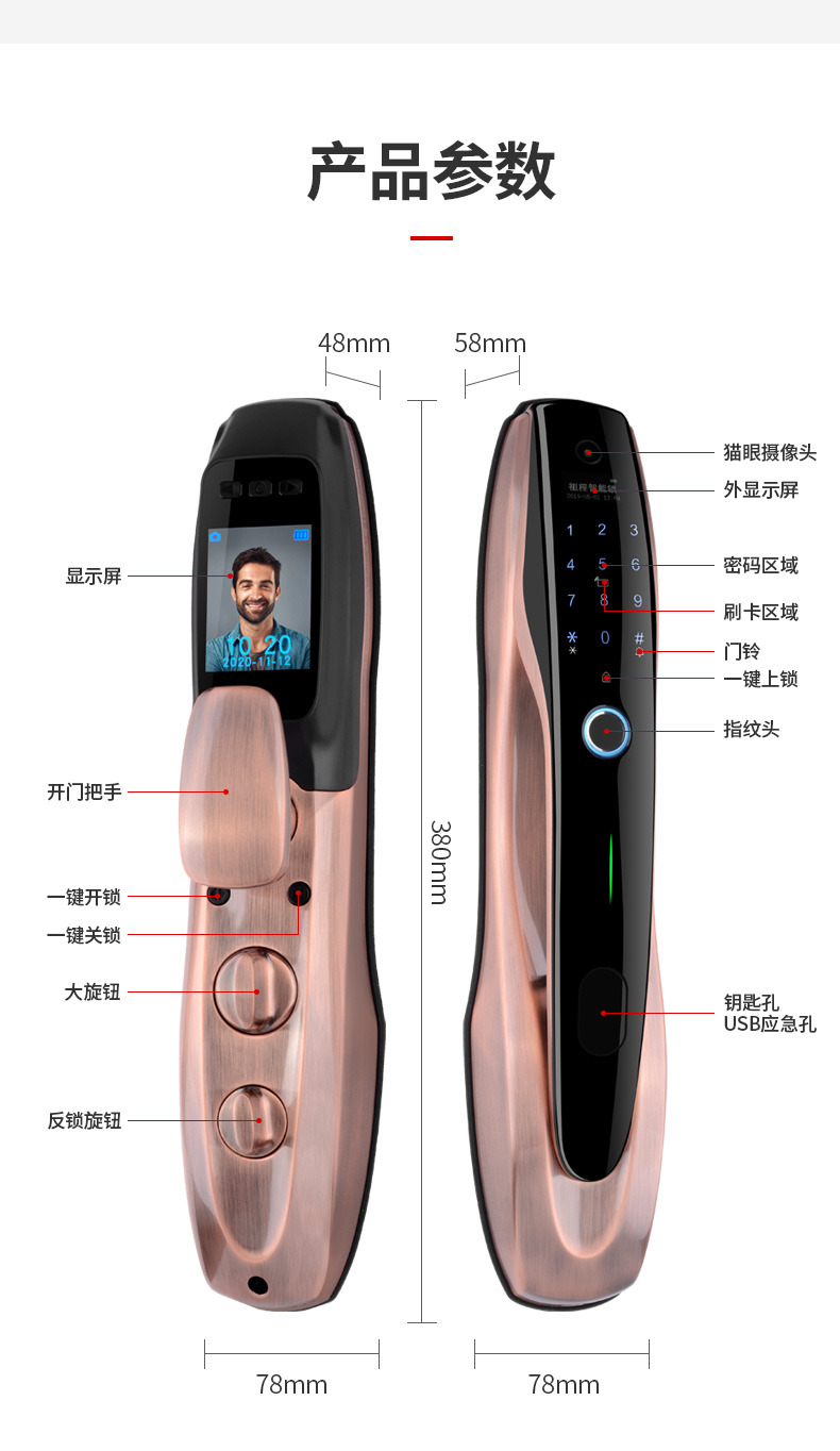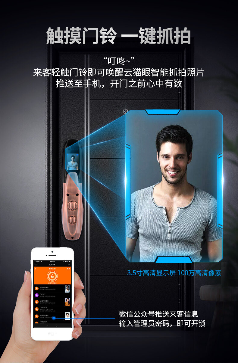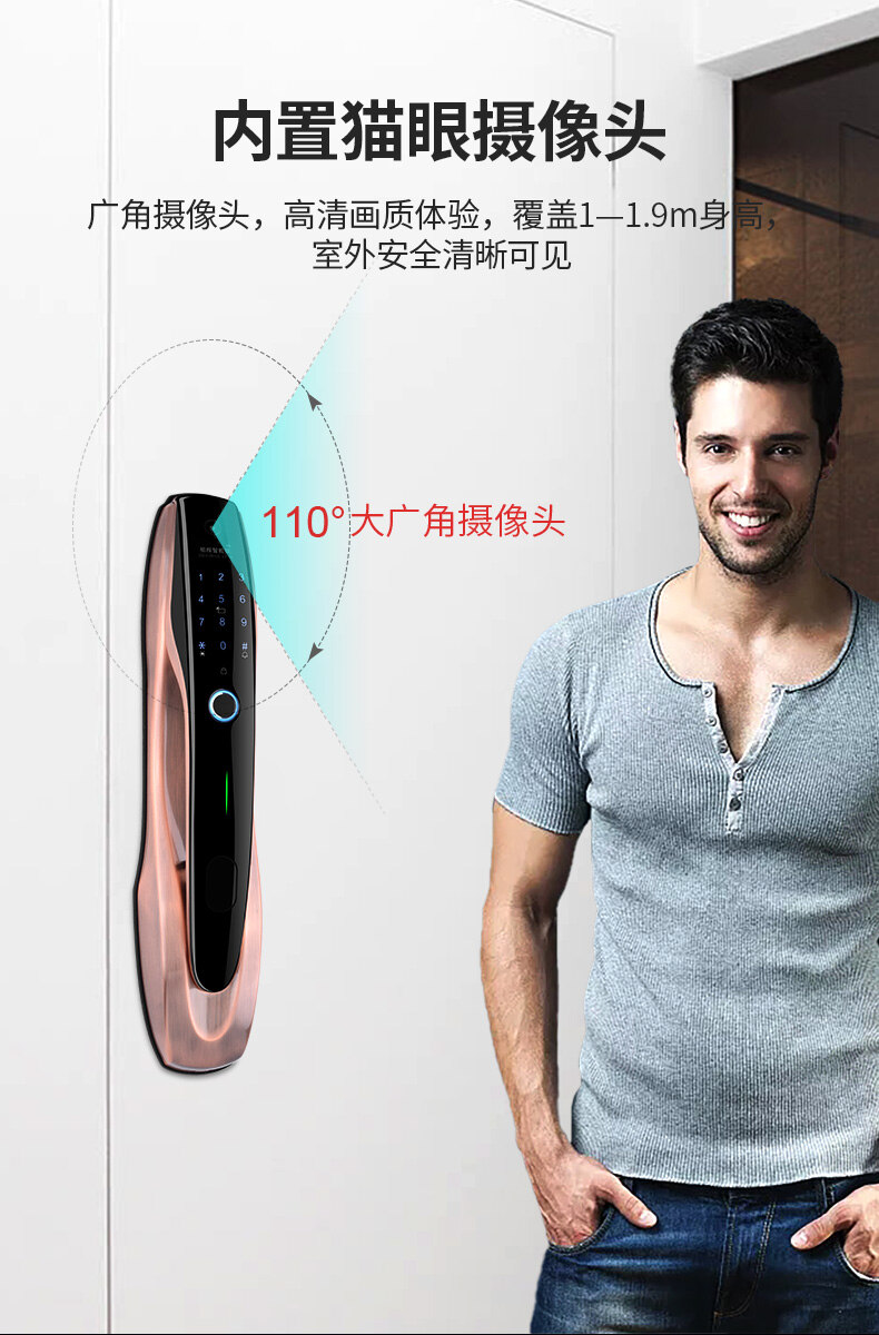 ZUCON祖程F793A指紋鎖家用防盜門智能電子門鎖密碼鎖帶電子貓眼攝像頭