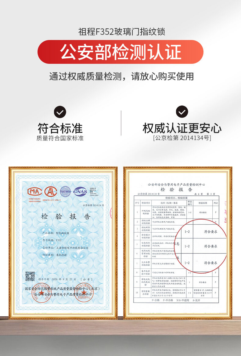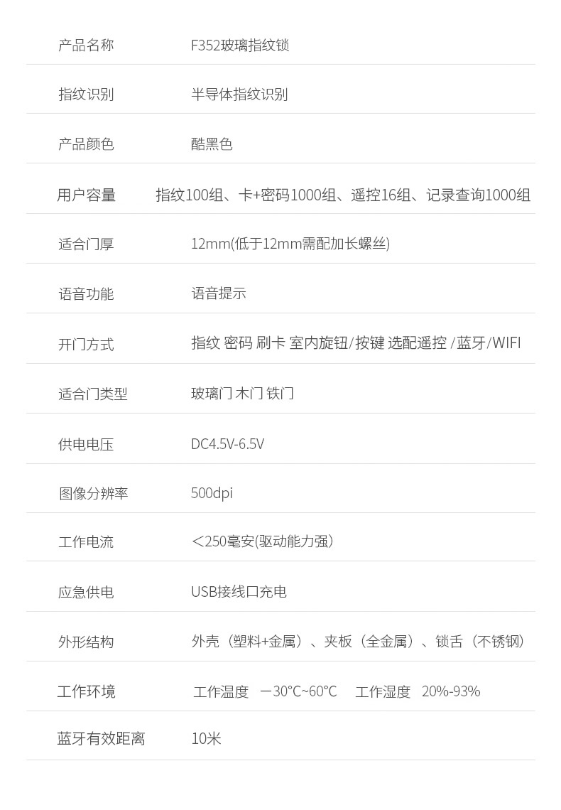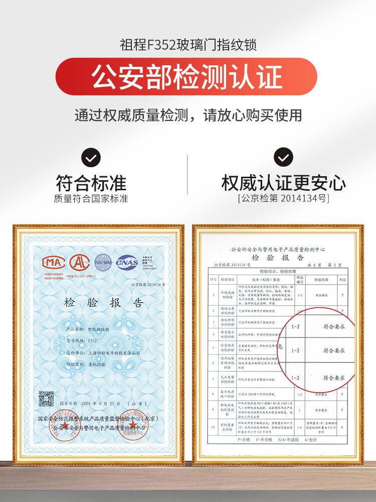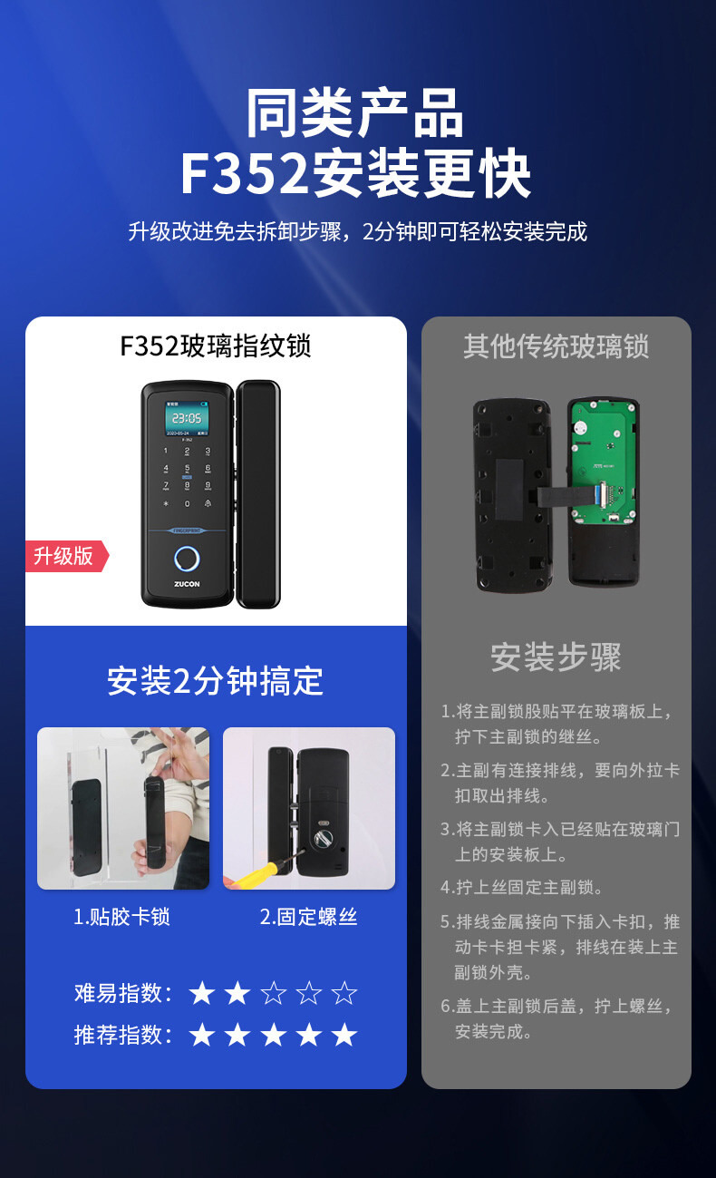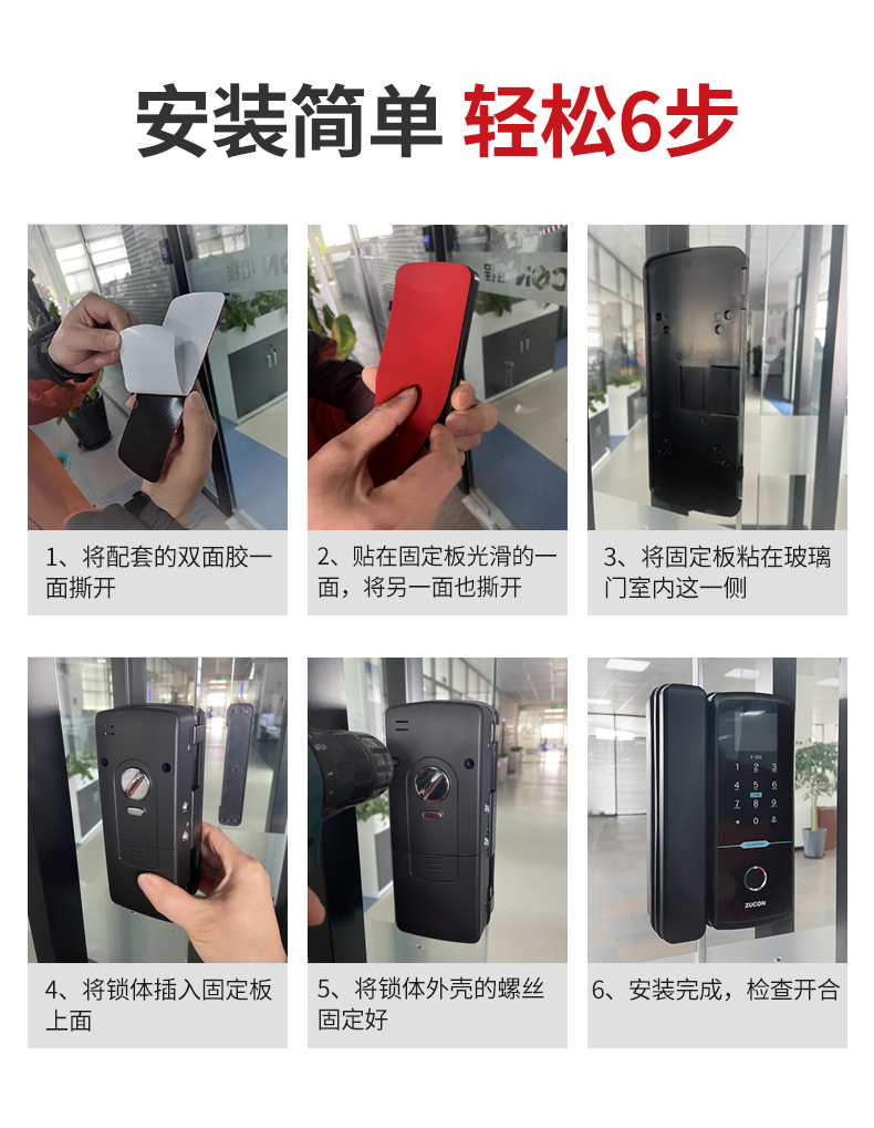 ZUCON祖程F352WIFI玻璃門指紋鎖免開孔辦公室智能電子密碼鎖單雙開門門禁鎖