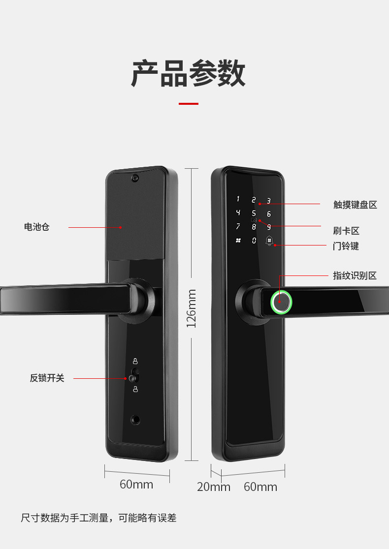 ZUCON祖程 S12木門指紋鎖室內木門電子智能門鎖出租房刷卡指紋密碼鎖