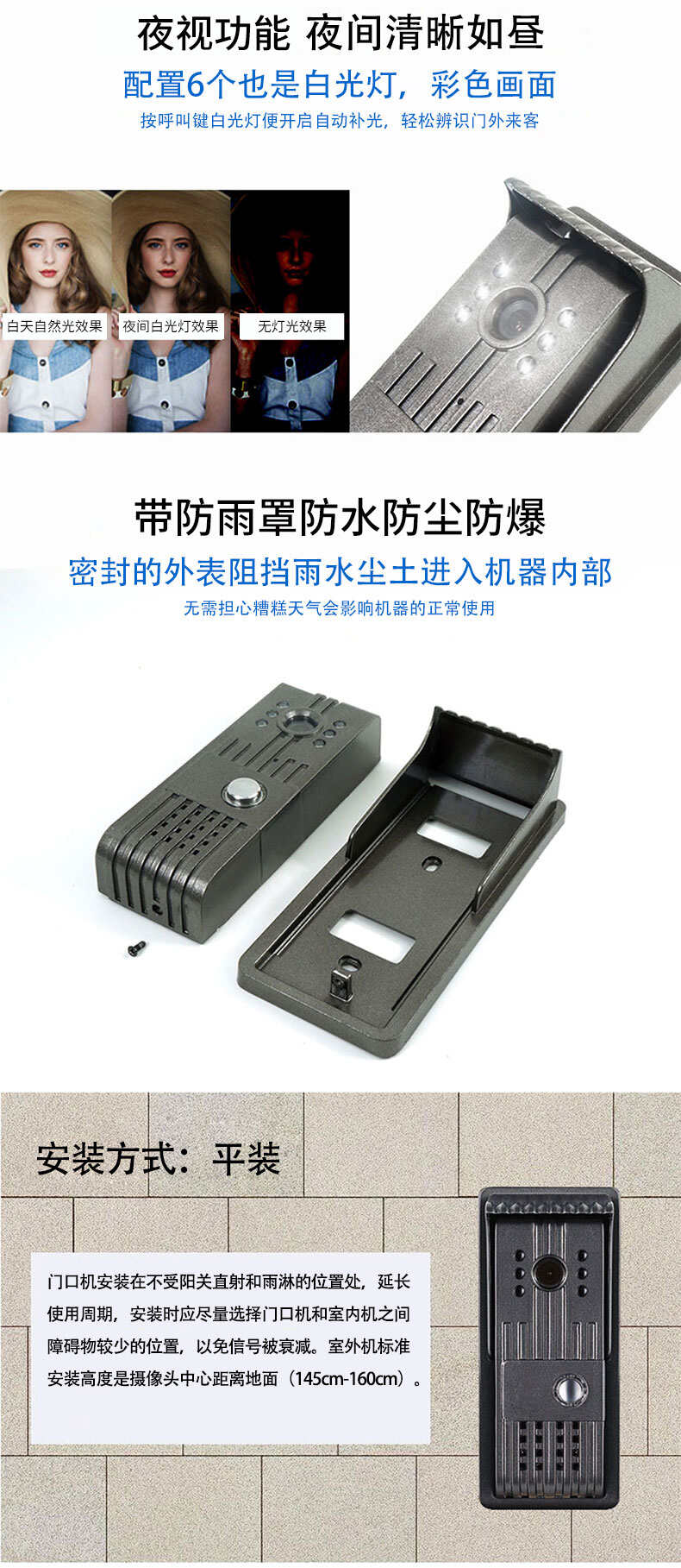 ZUCON祖程M100別墅有線可視對講彩色高清夜視7寸可視對講門鈴防雨防砸防水