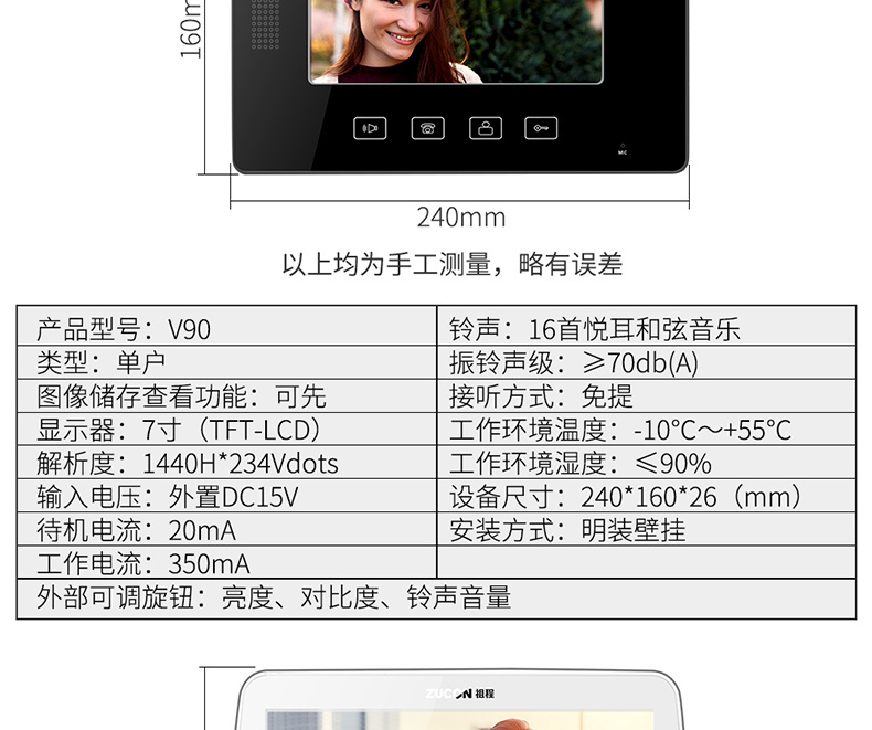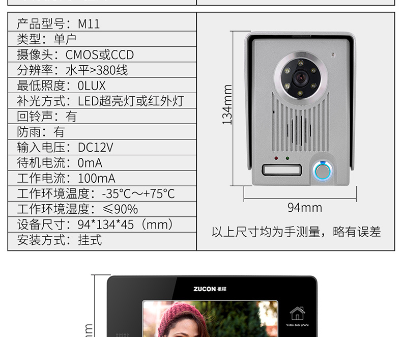 ZUCON祖程M10、M11別墅有線可視對(duì)講彩色高清夜視7寸10寸可視對(duì)講門鈴