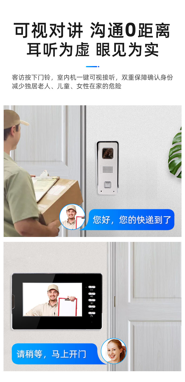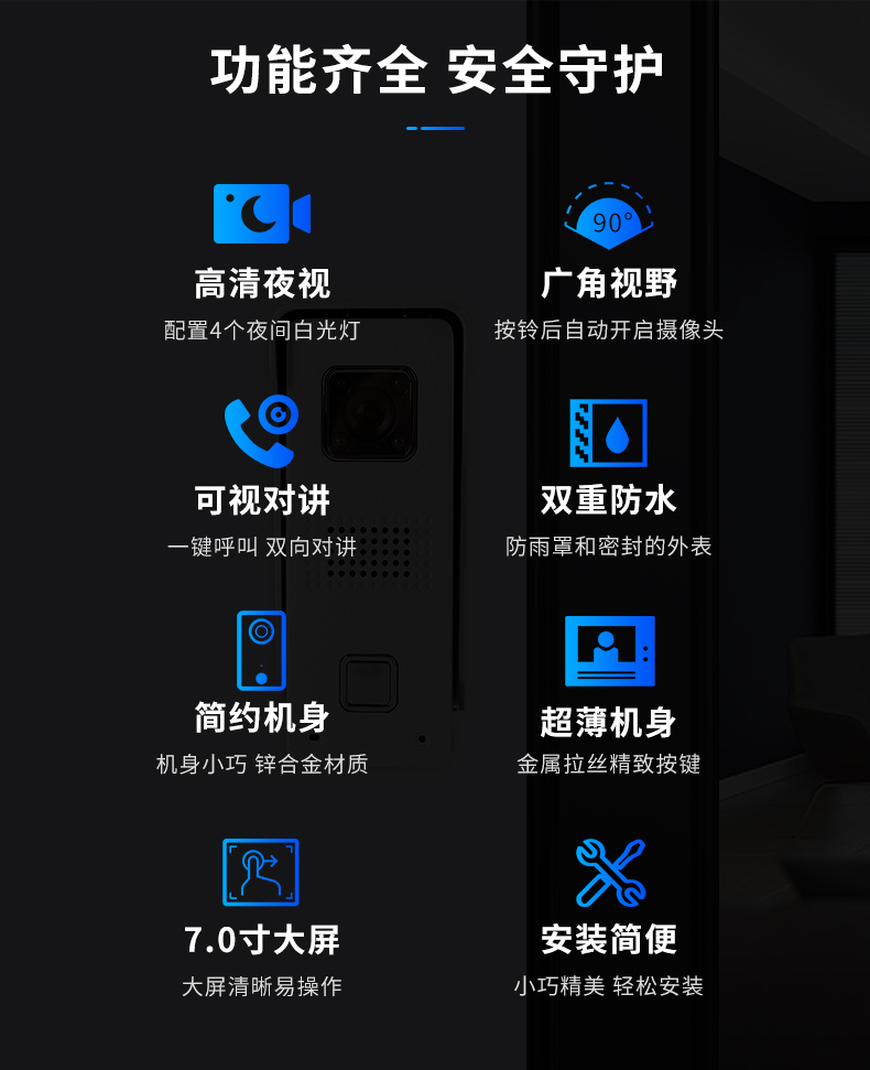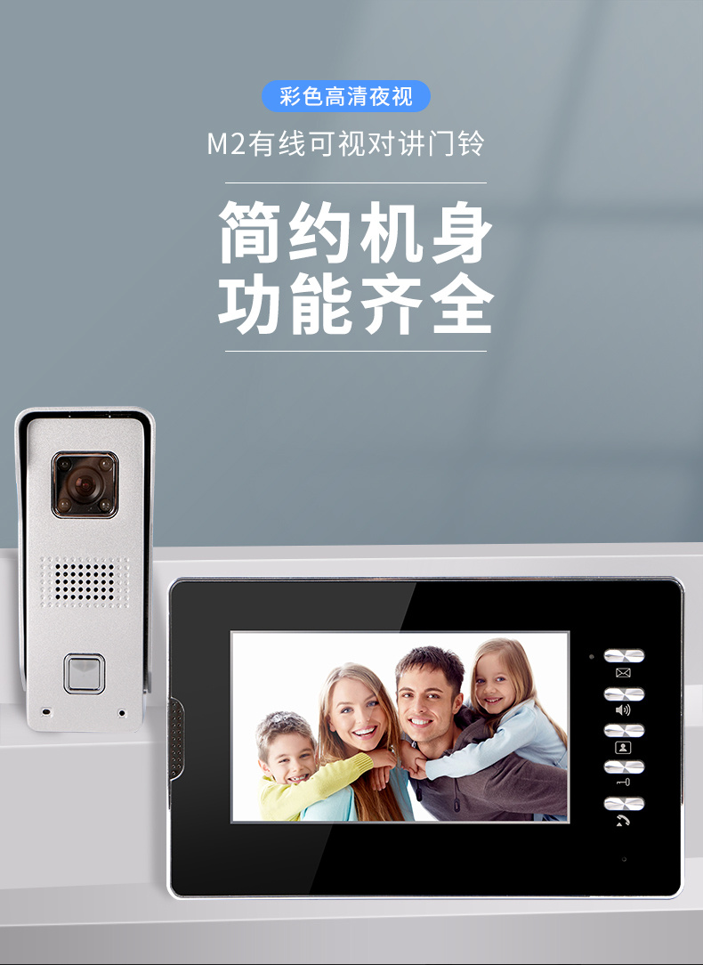 ZUCON祖程M2有線可視對講 7寸可視彩色高清夜視對講門鈴 家用辦公包郵