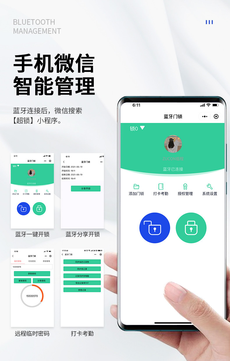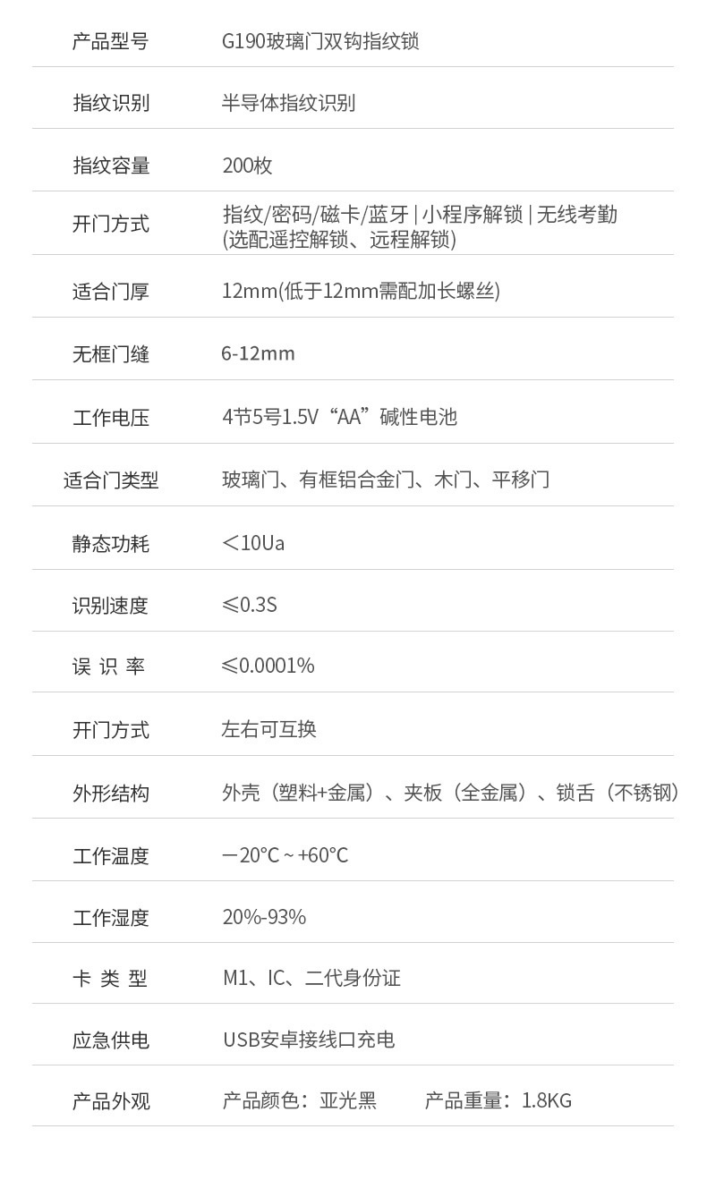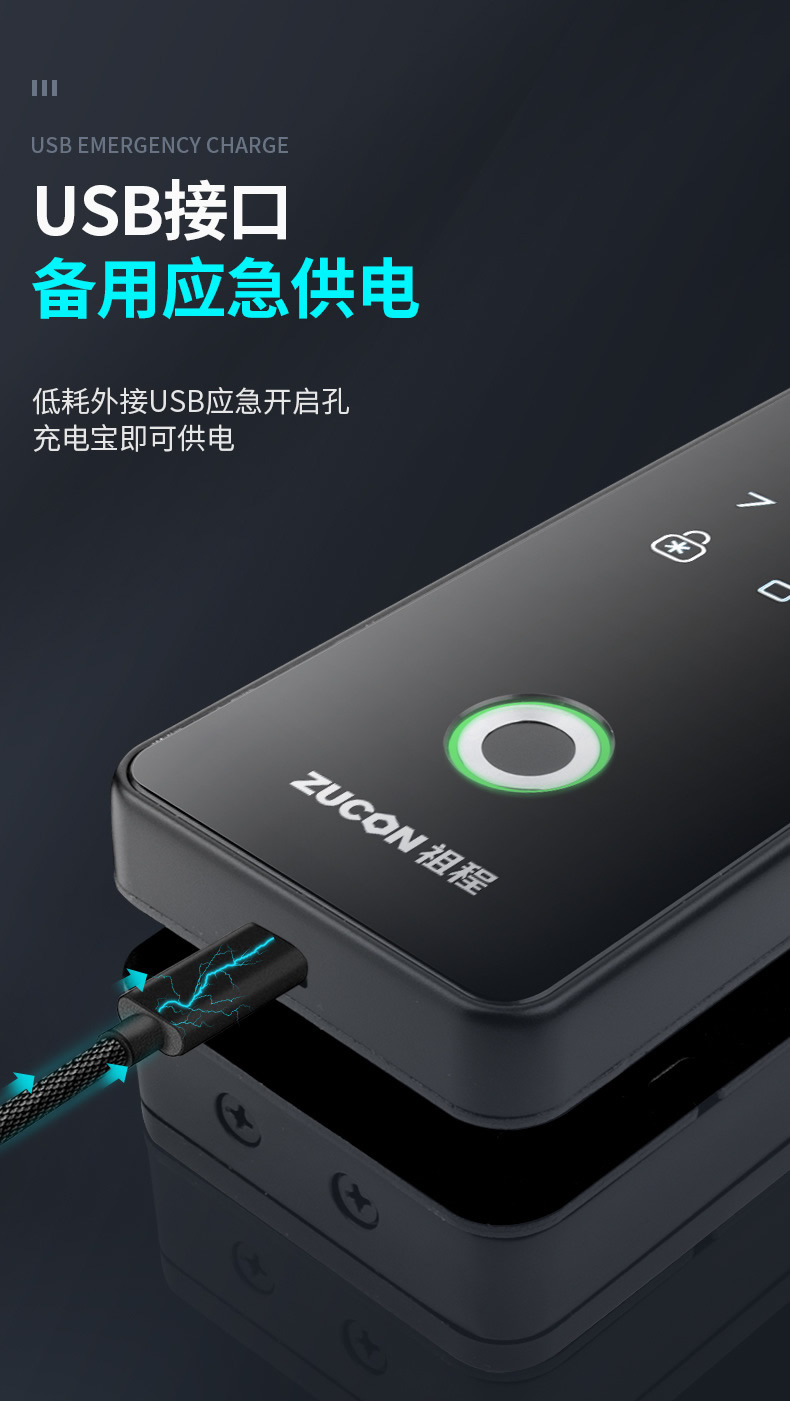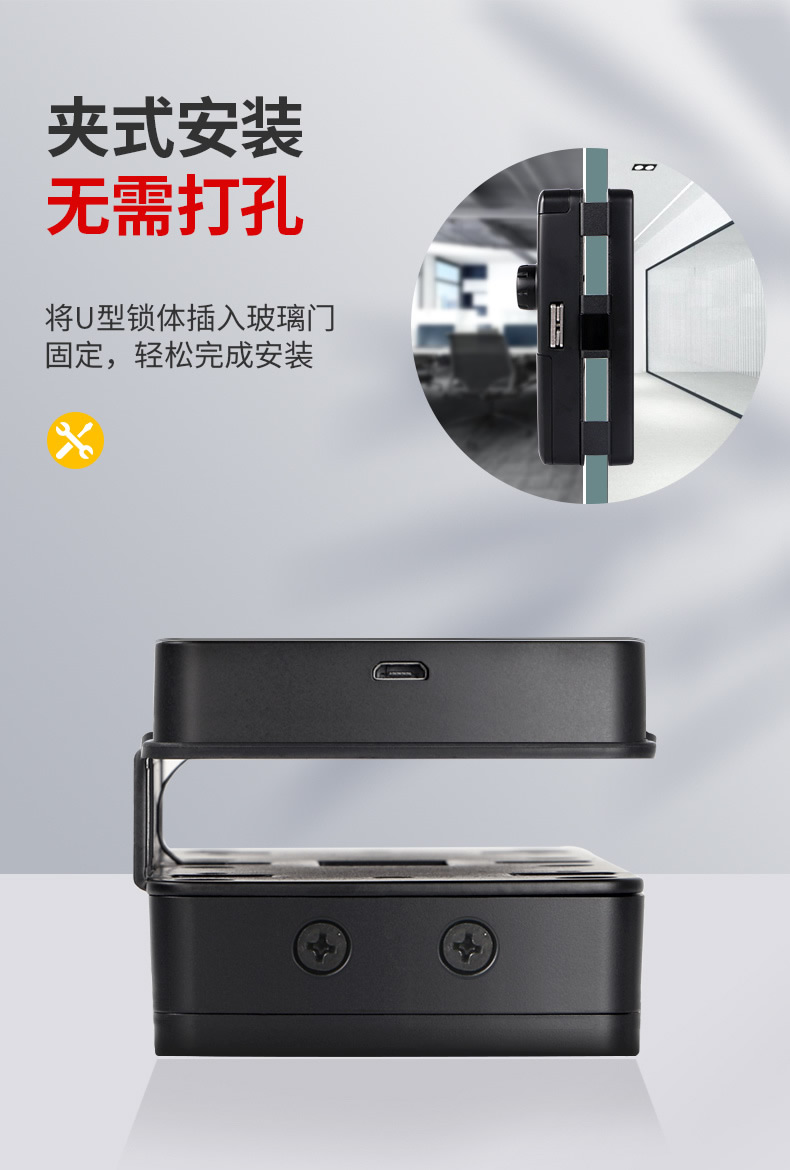 ZUCON祖程G190玻璃門指紋鎖辦公室密碼鎖免開孔單雙門鎖智能電子鎖門禁鎖
