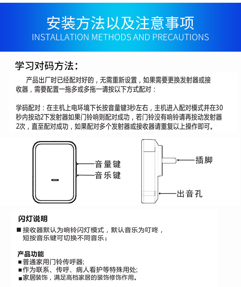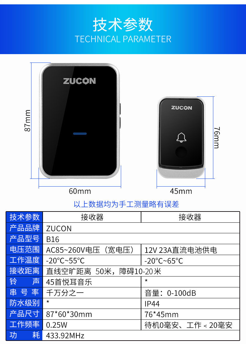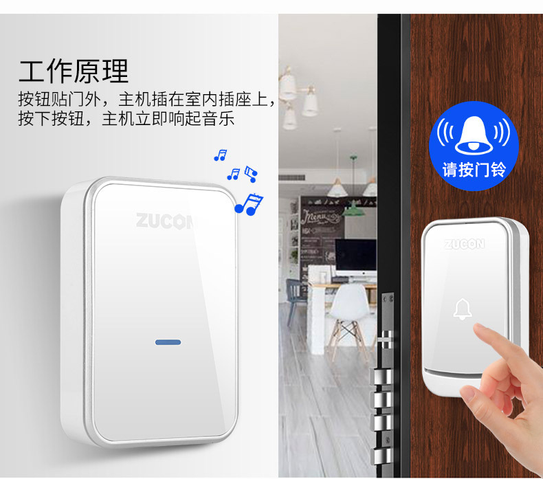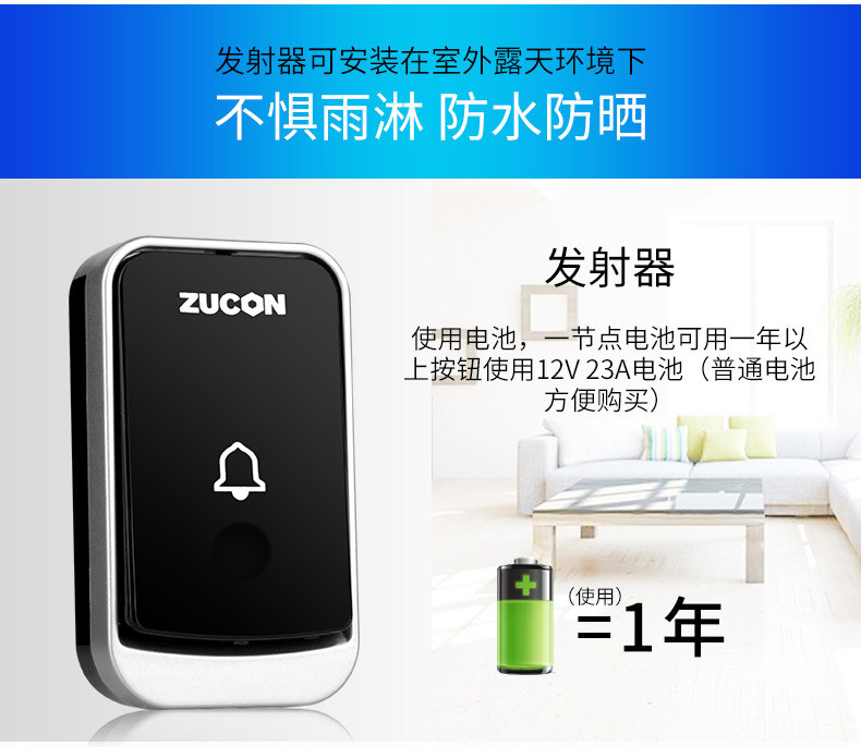ZUCON祖程B16無線門鈴電子門鈴遠距離門鈴家用辦公室別墅