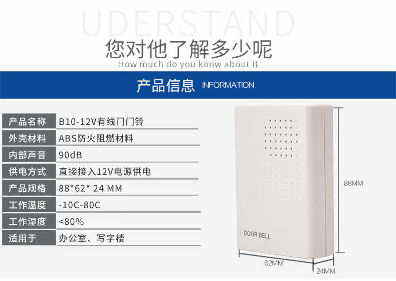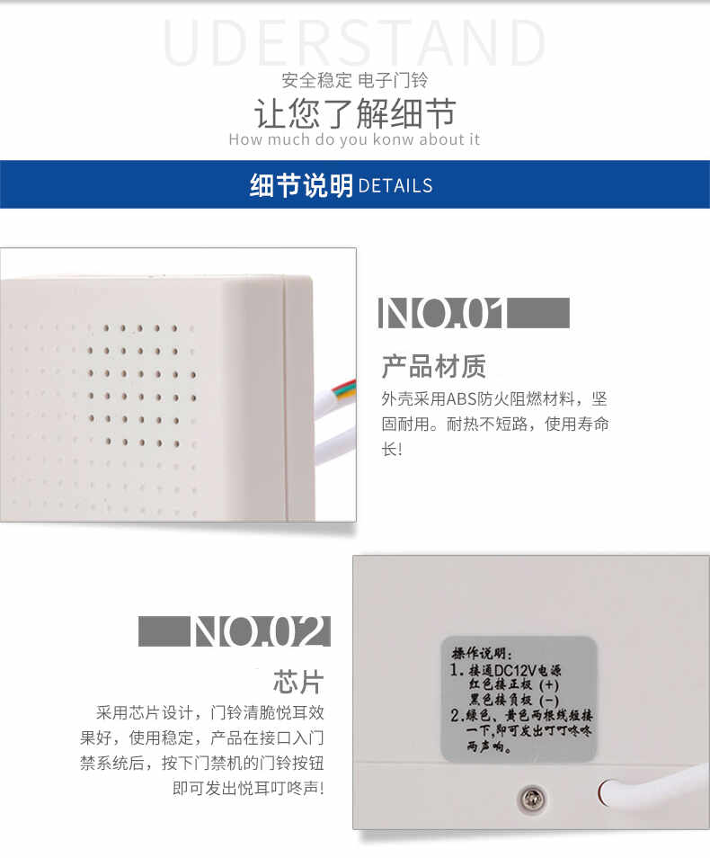 ZUCON祖程B10電子門鈴 門禁系統配套門鈴 12V電子門鈴 無需電池門鈴