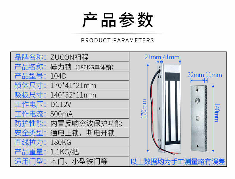 ZUCON祖程104D磁力鎖180kg門禁系統(tǒng)鎖