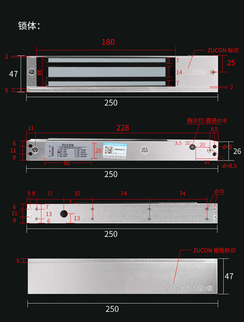 ZUCON祖程105D磁力鎖280kg單門電磁鎖12v門禁鎖電控鎖可防水延時信號反饋