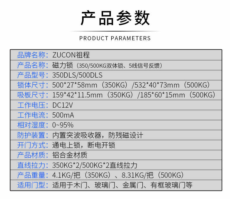 ZUCON祖程350、500公斤單門雙門單體雙體磁力鎖門禁鎖電磁鎖磁吸鎖