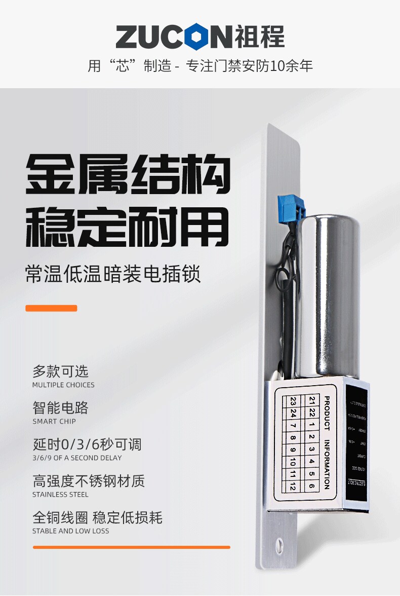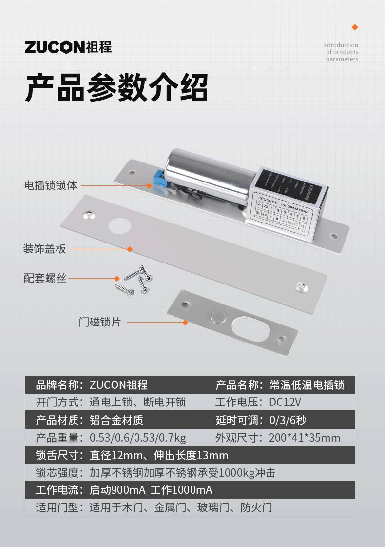 ZUCON祖程203D常溫低溫電插鎖門控插銷鎖玻璃門木門鐵門電鎖