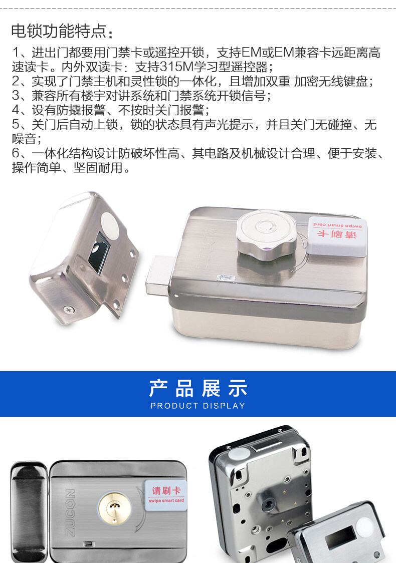 ZUCON祖程211D電控門禁鎖靈性靜音電鎖單元門電控鎖家用樓宇門電控鎖