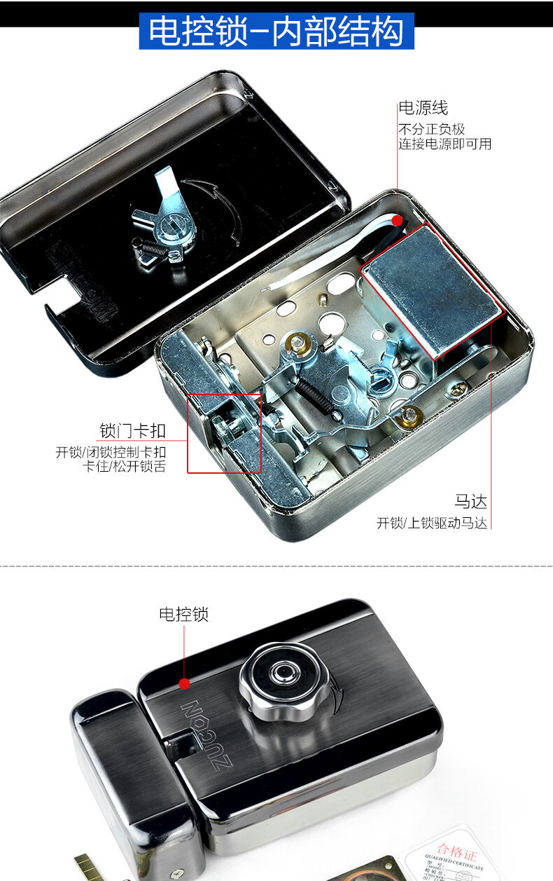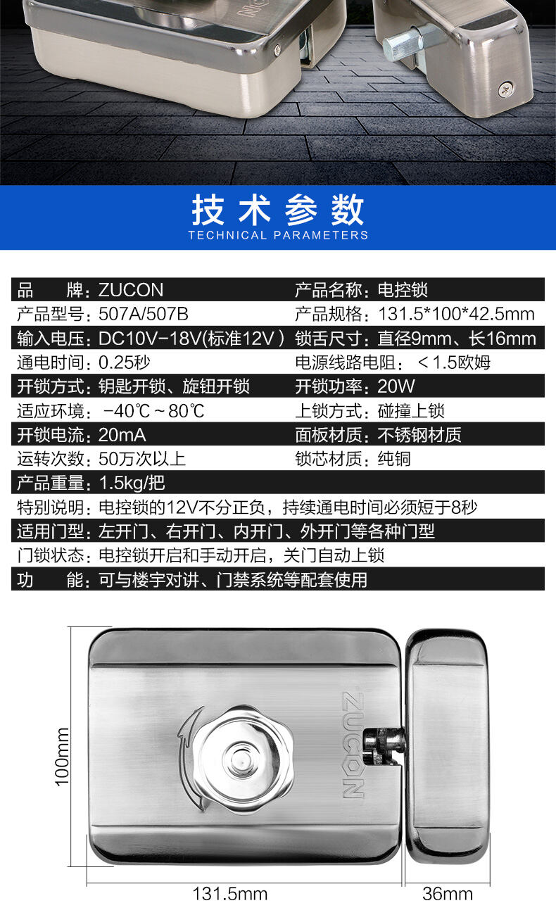 ZUCON祖程507A、507B電控門禁鎖靈性靜音電鎖單元門電控鎖單門樓宇門電控鎖