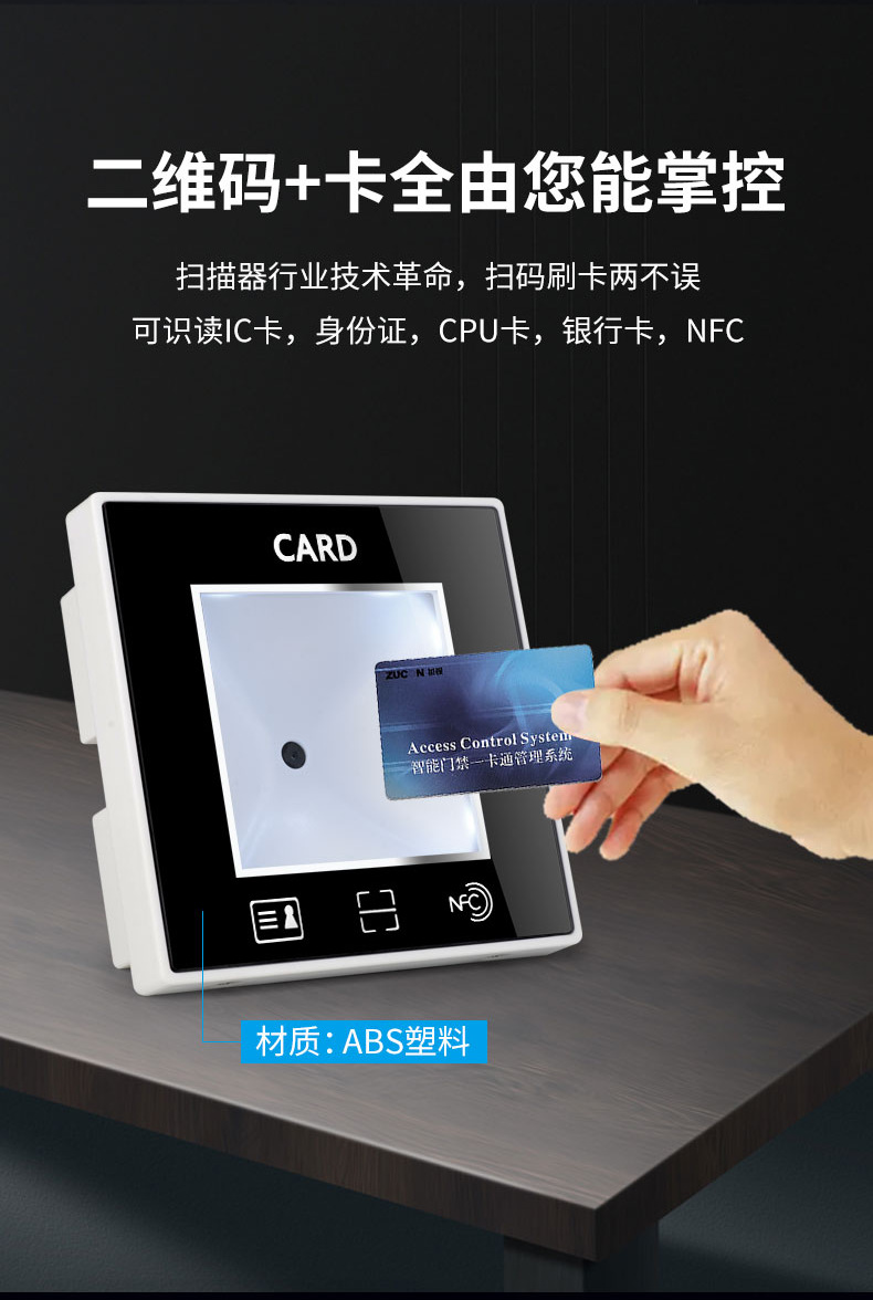 ZUCON祖程 二維碼 門禁讀頭門禁讀卡器NFC-IC卡二維碼門禁一體機外接讀頭