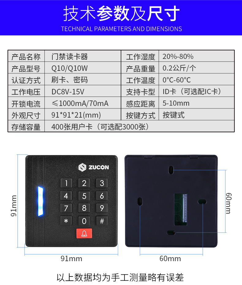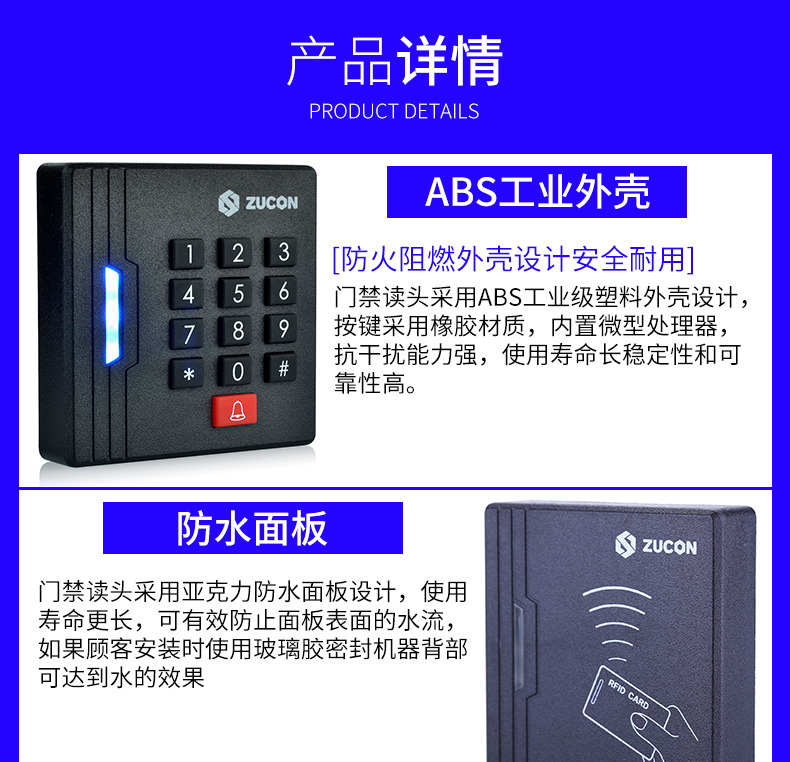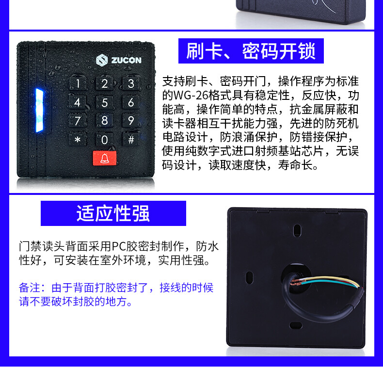 ZUCON祖程Q10、Q10W門禁讀頭門禁讀卡器IC、ID卡門禁讀頭門禁刷卡器WG26讀頭