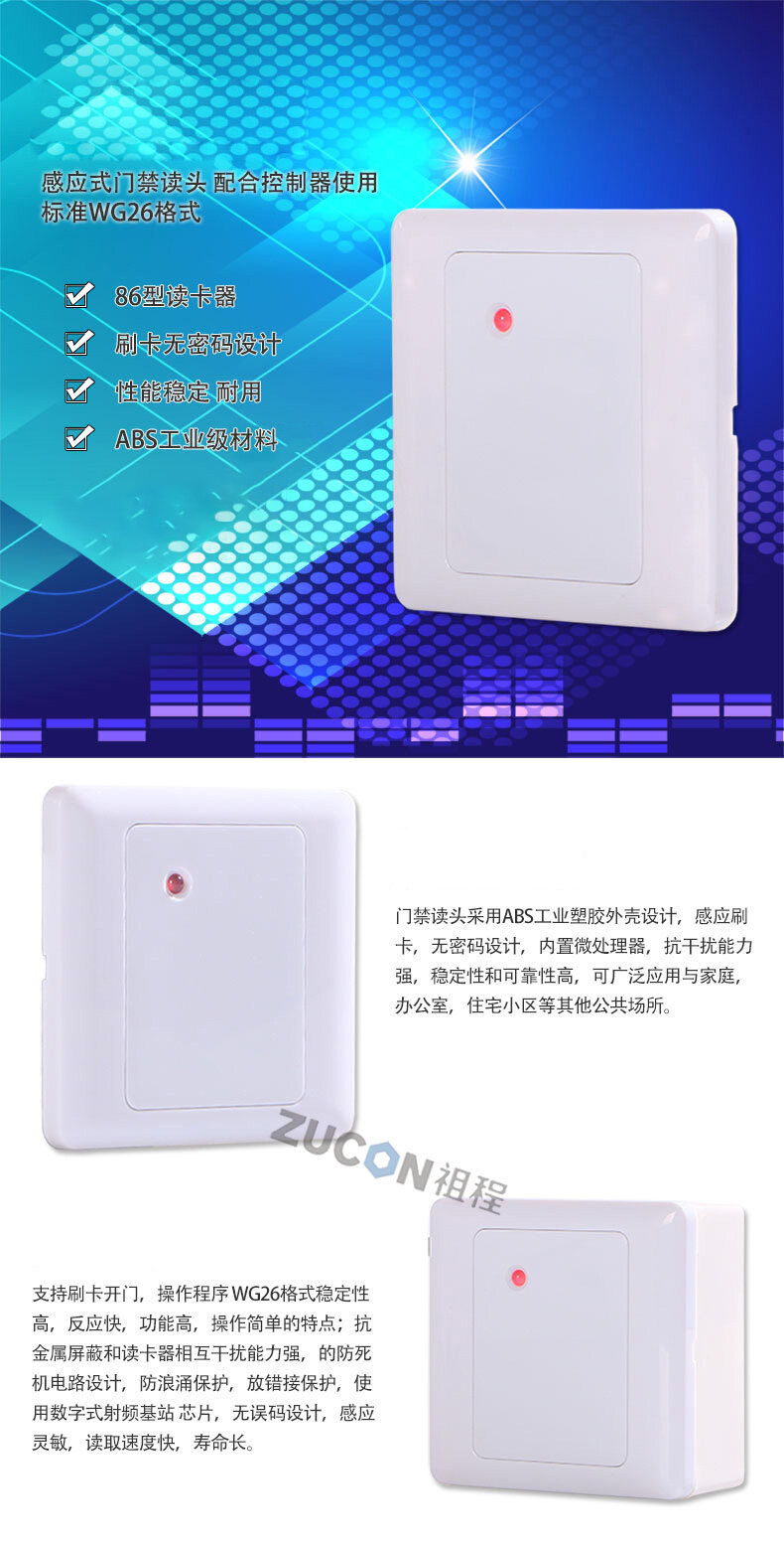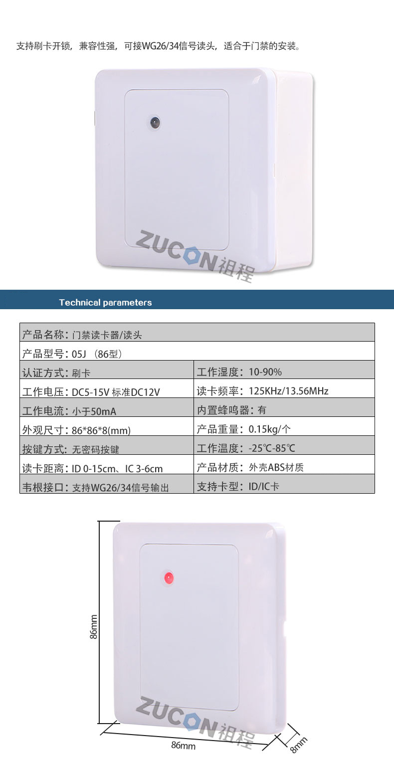 ZUCON祖程05J-86型門禁考勤讀卡器IDIC卡門禁讀頭刷卡機門禁刷卡器讀頭