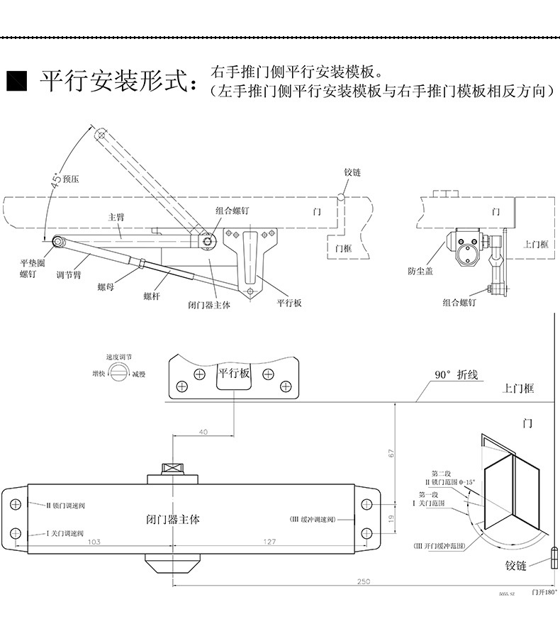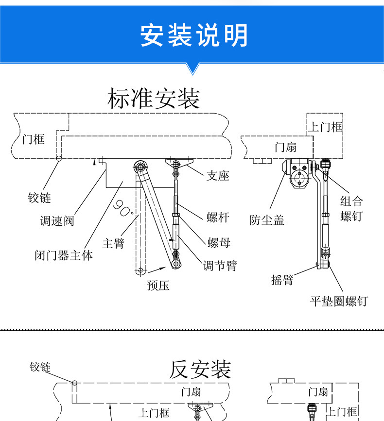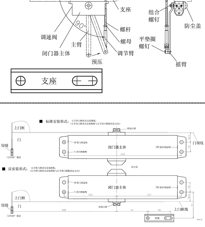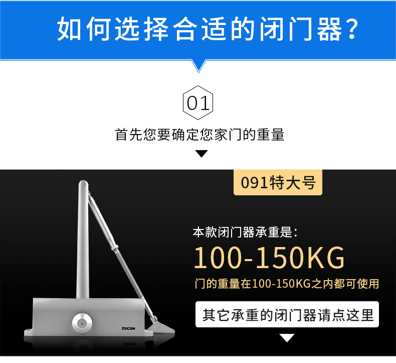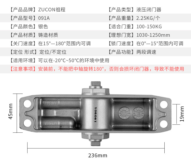 ZUCON祖程091A閉門器液壓緩沖不定位定位自動關門器家用門防火門100-150KG