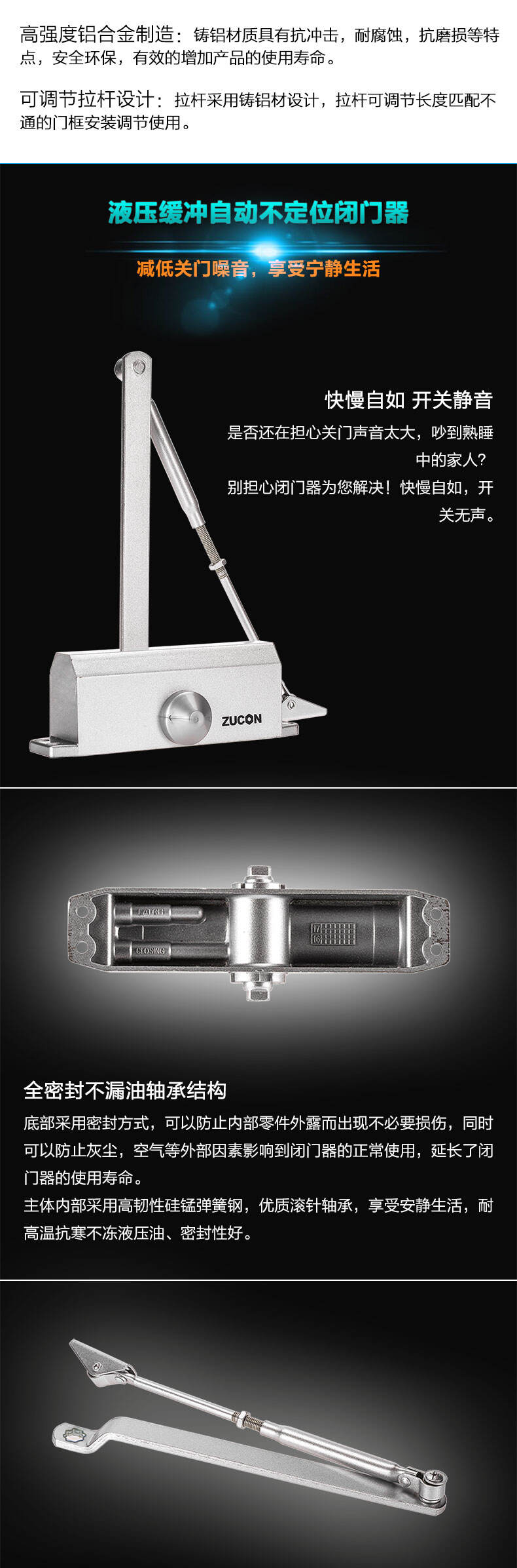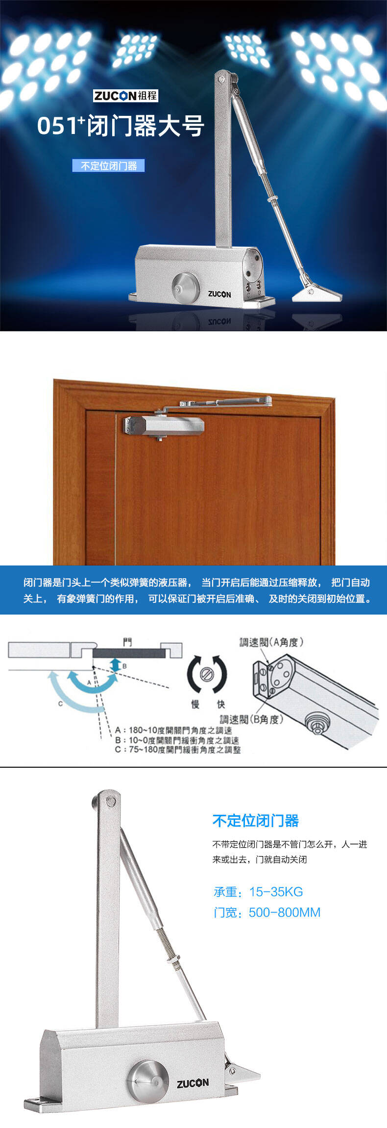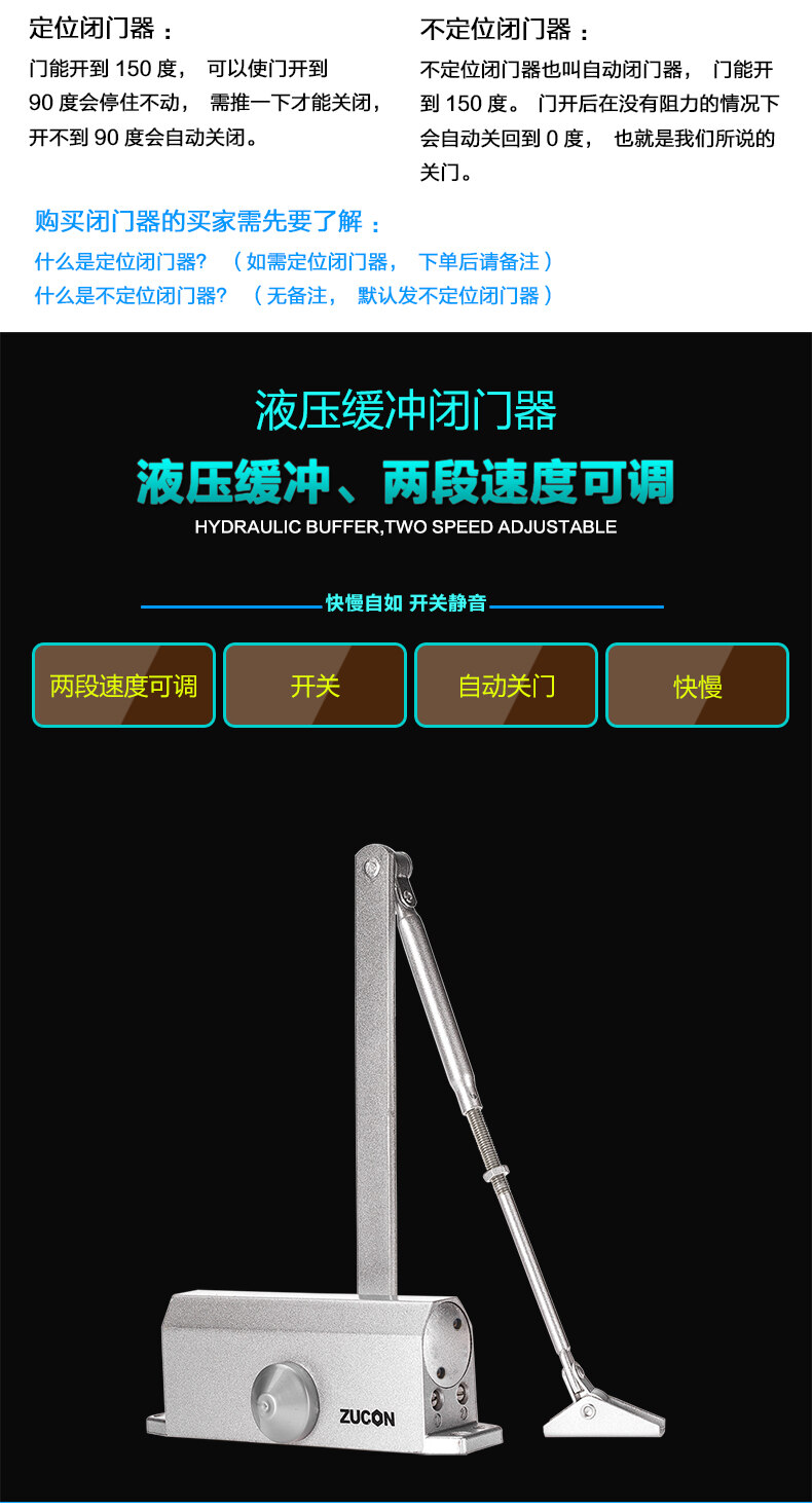 ZUCON祖程051+液壓閉門器小號自動關門器門禁閉門器定位不定位