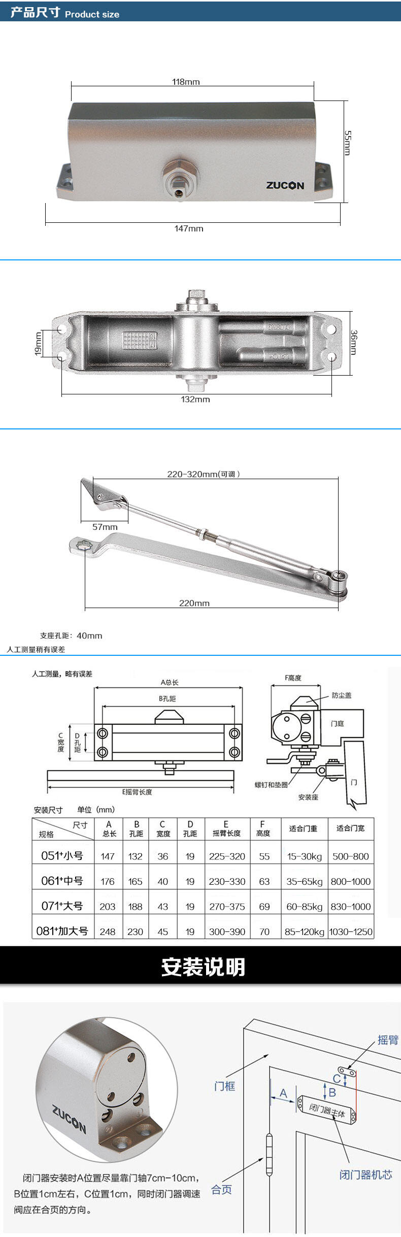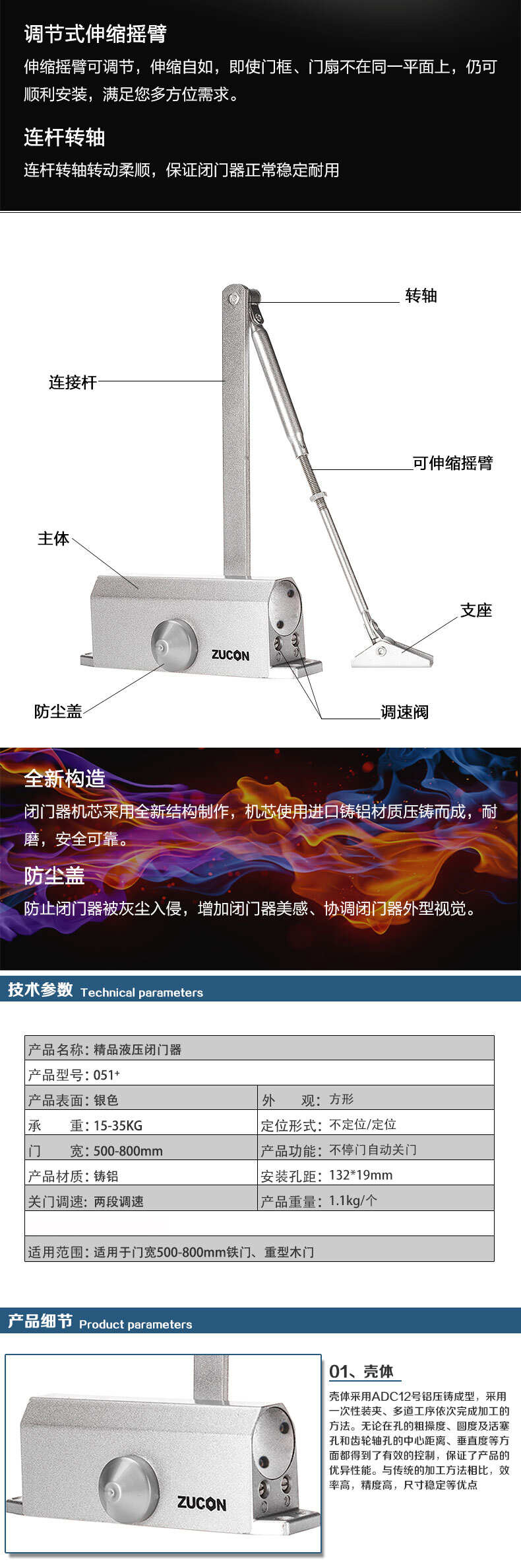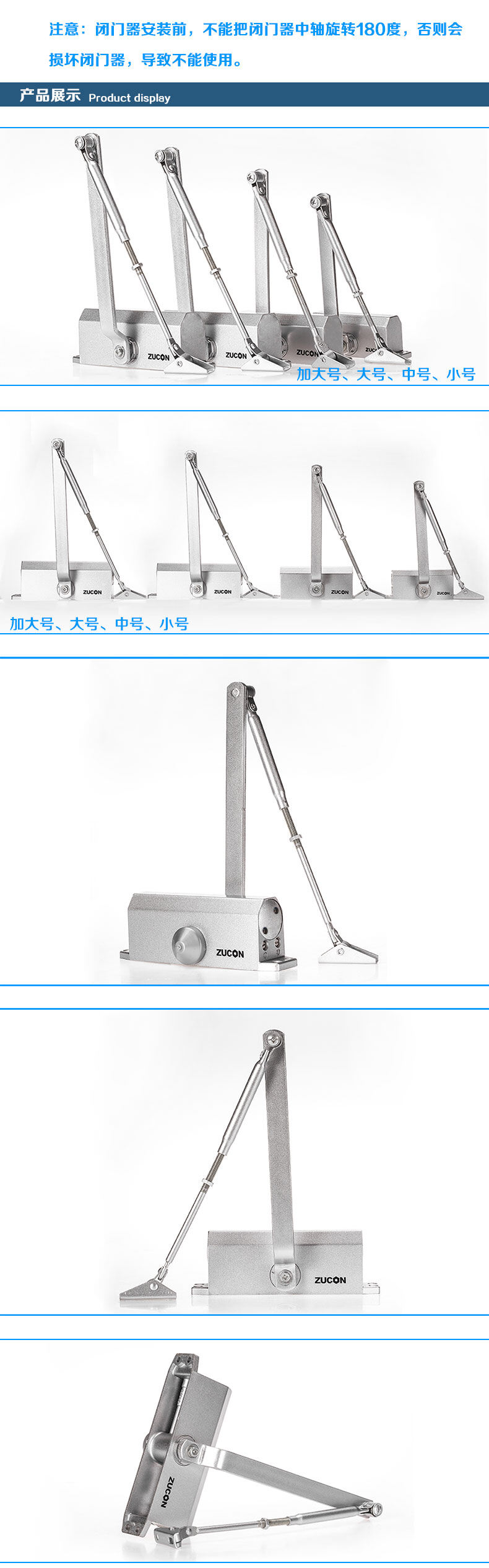 ZUCON祖程051+液壓閉門器小號自動關門器門禁閉門器定位不定位