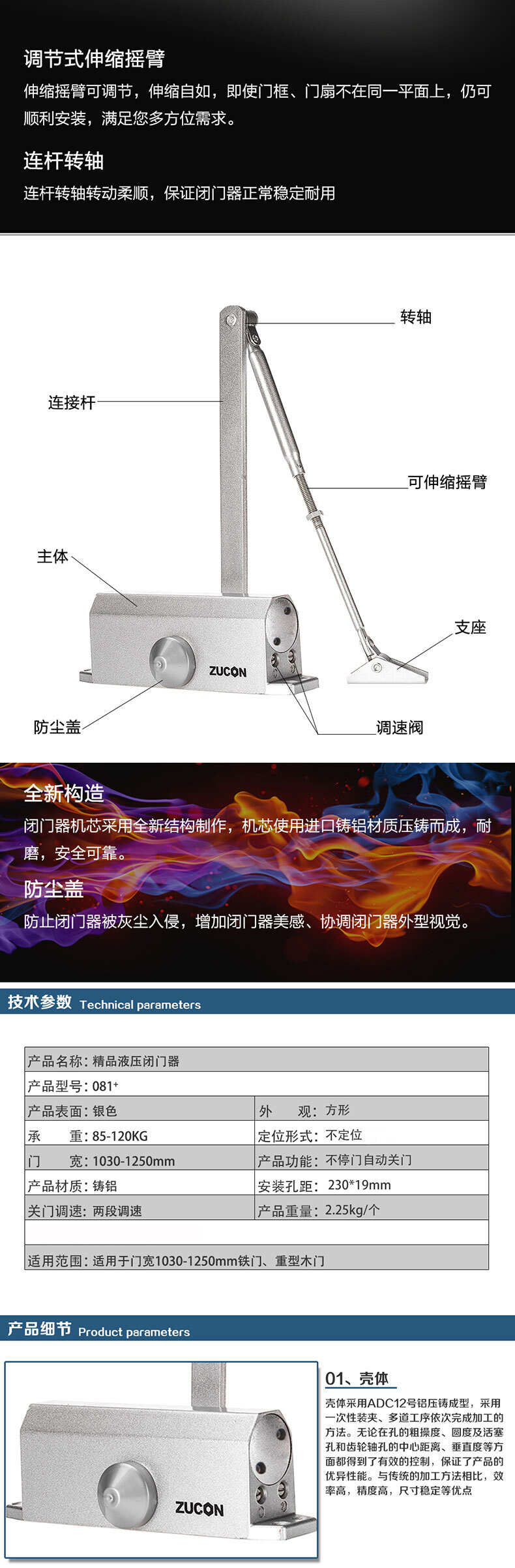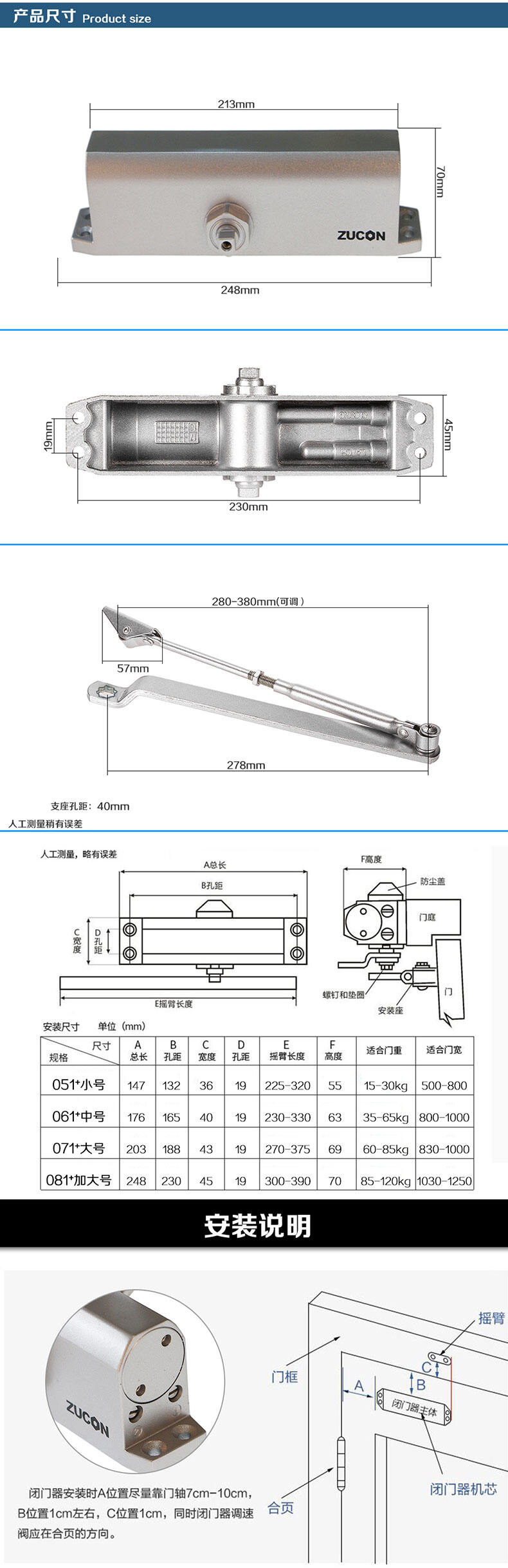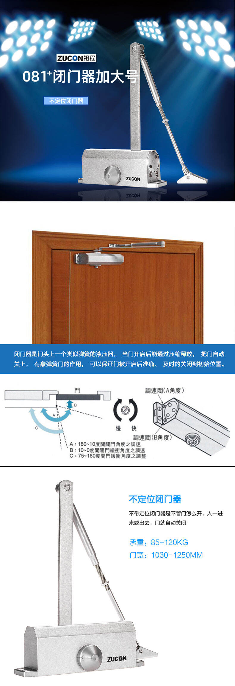 ZUCON祖程081+加大號(hào)液壓閉門器 85-120KG自動(dòng)關(guān)門器不定位閉門器