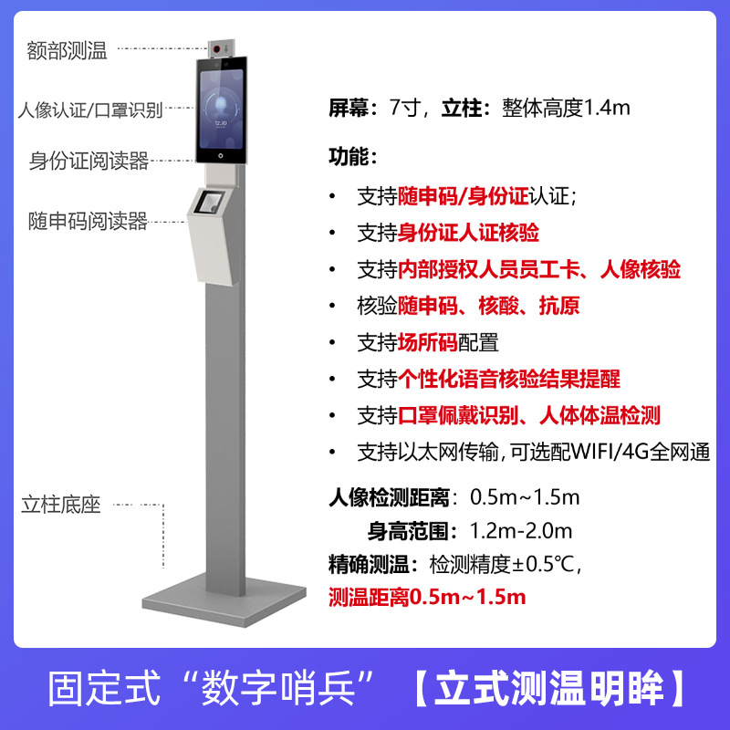 ZUCON祖程數字哨兵健康隨申場所碼電子數字哨兵人臉測溫刷卡身份證上海復工復產防疫