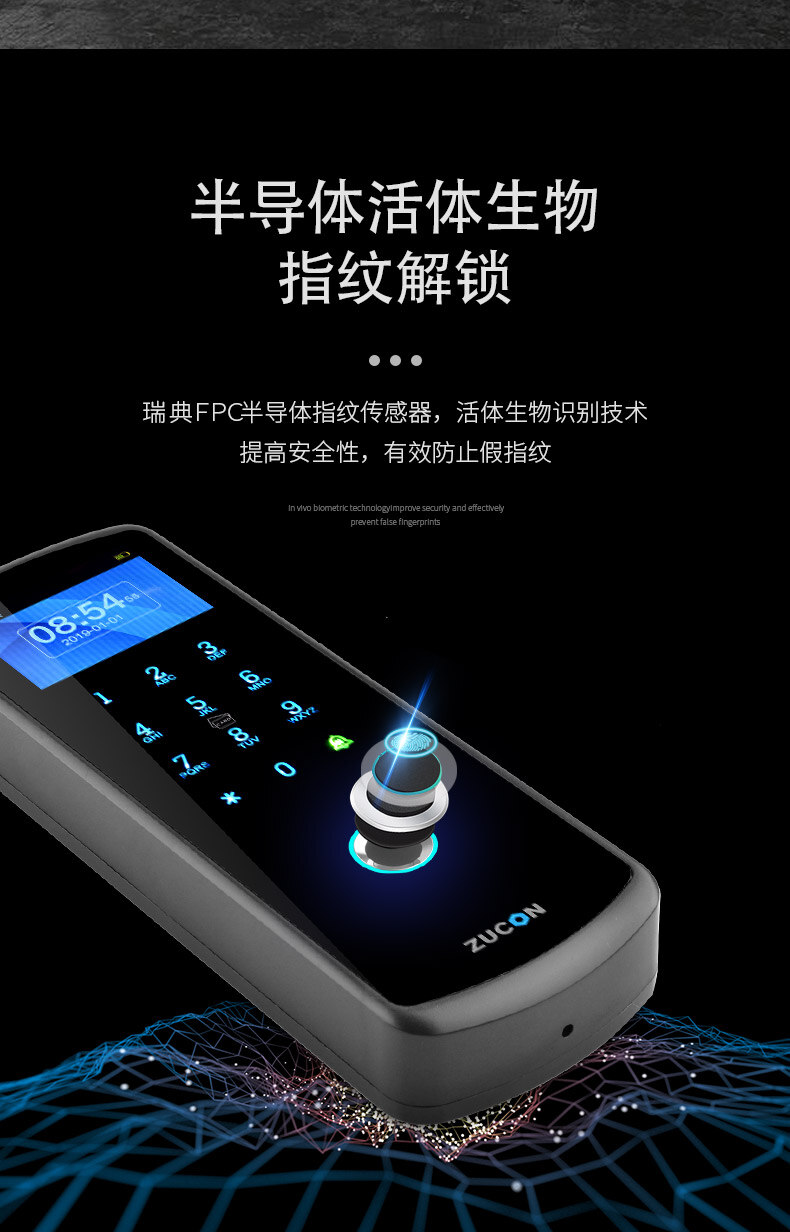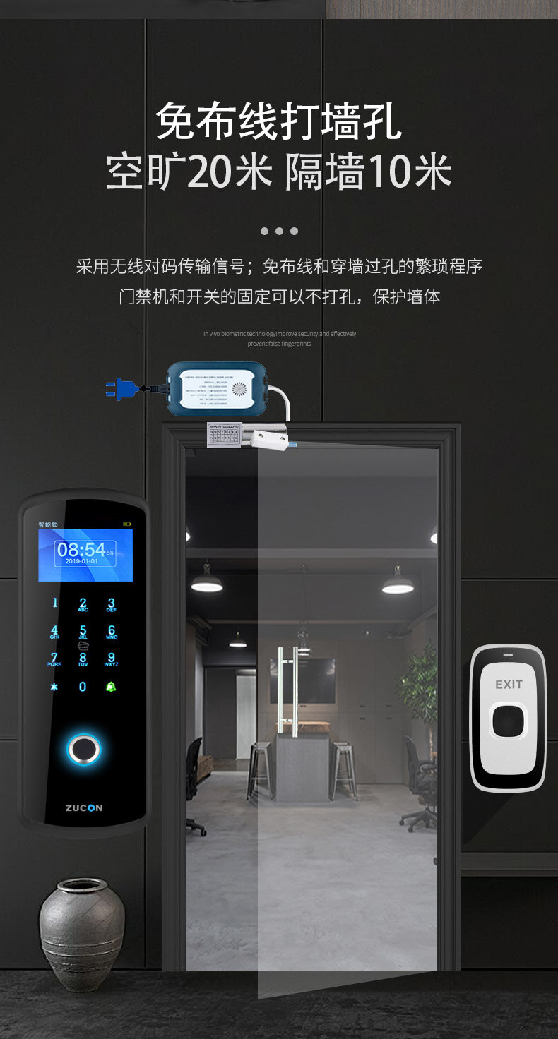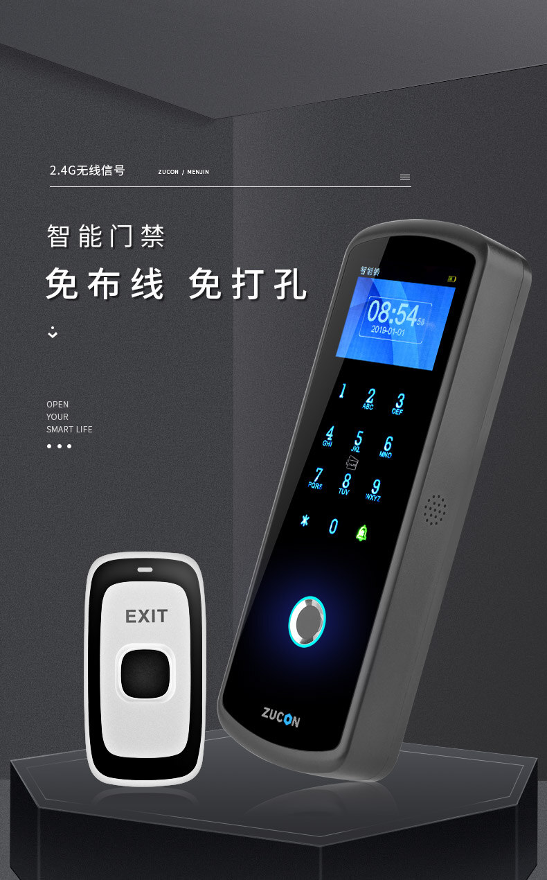 ZUCON祖程F23無(wú)線門禁鎖免布線指紋門禁系統(tǒng)一體機(jī)門禁套裝玻璃門禁鎖