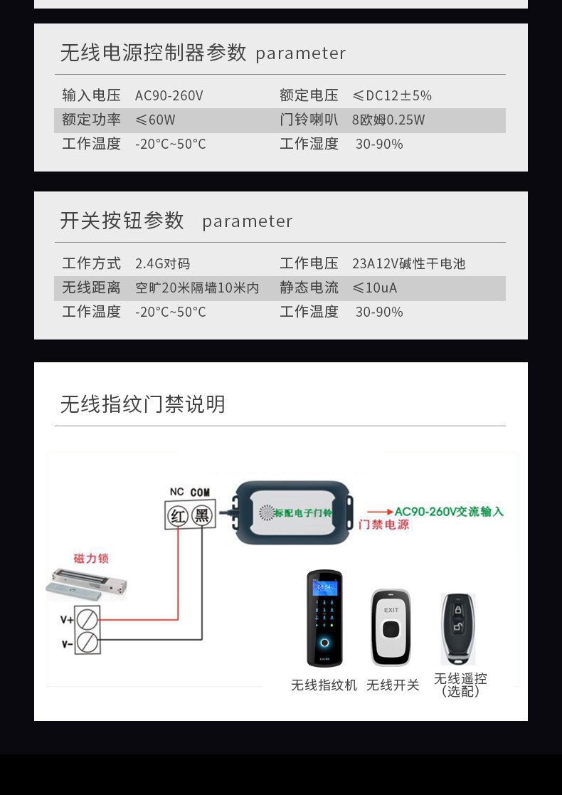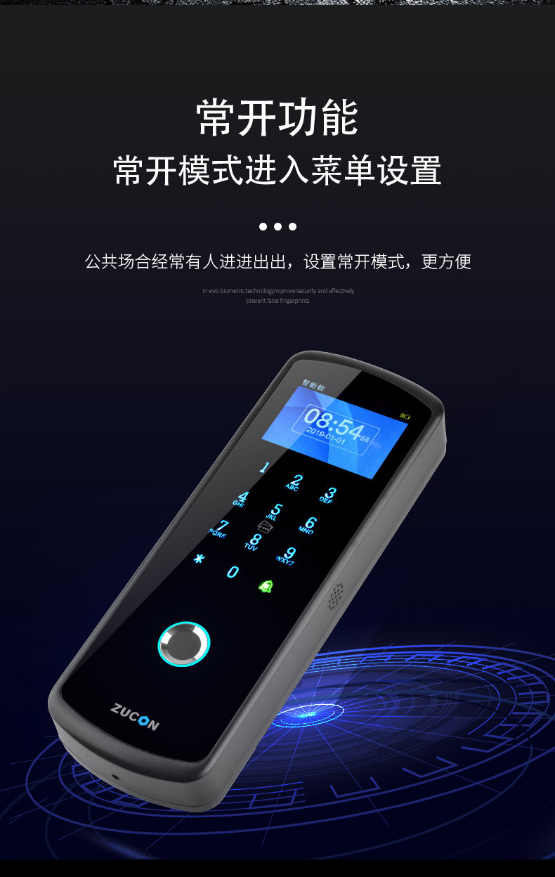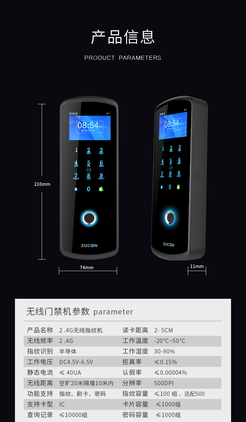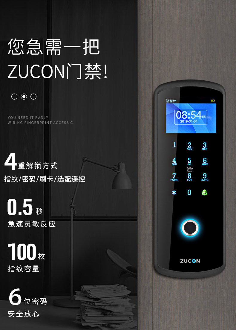 ZUCON祖程F23無(wú)線門禁鎖免布線指紋門禁系統(tǒng)一體機(jī)門禁套裝玻璃門禁鎖