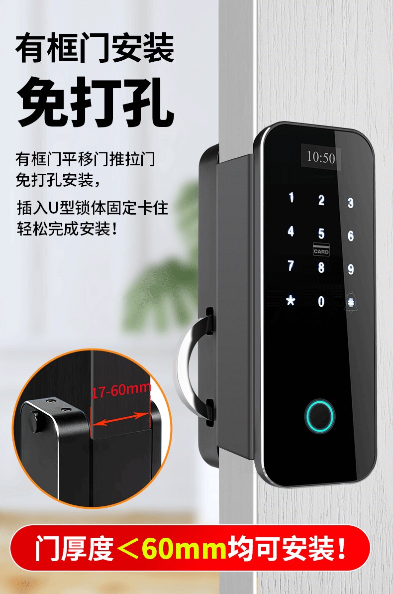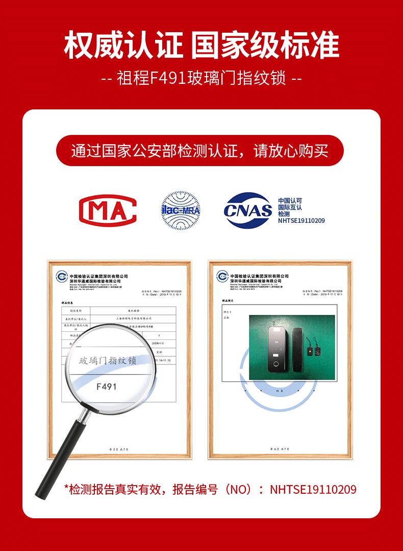 ZUCON祖程F491有框玻璃門指紋鎖雙門電子鎖密碼鎖雙開商鋪智能鎖免開孔