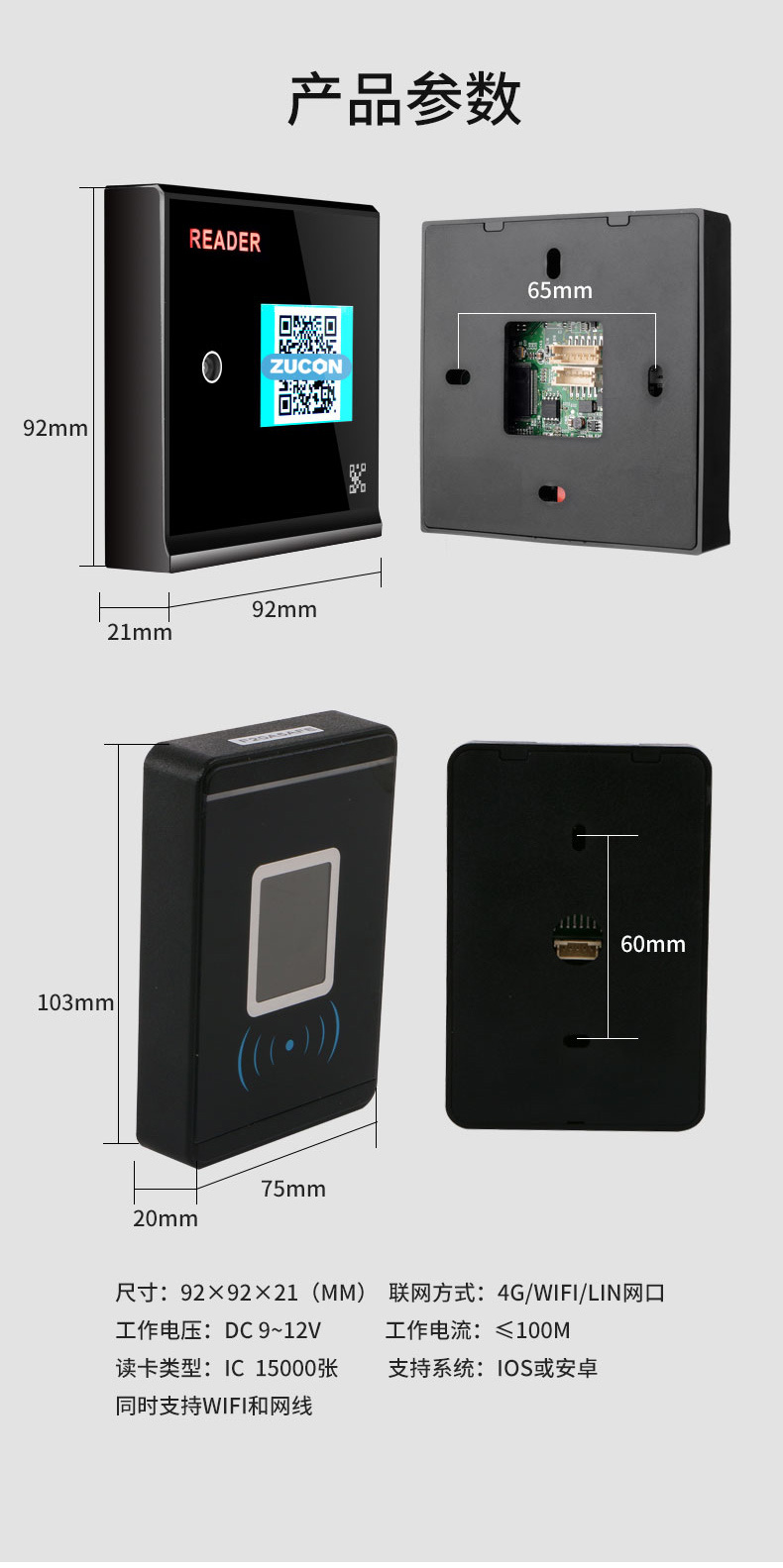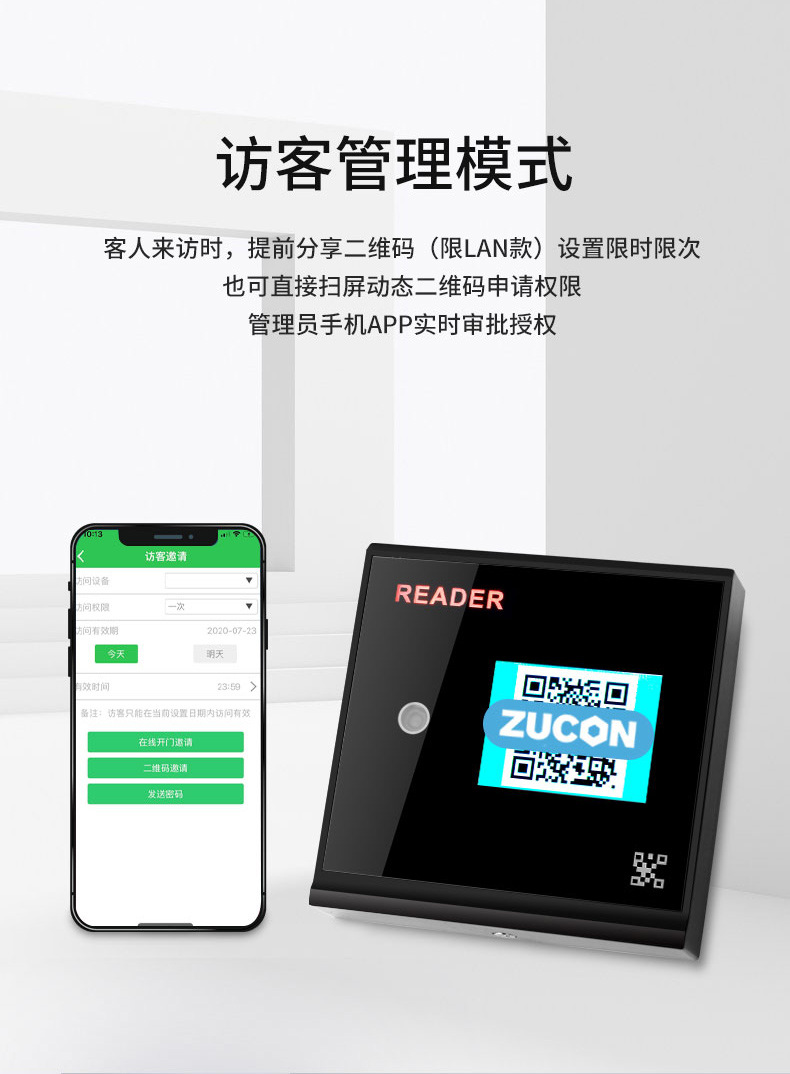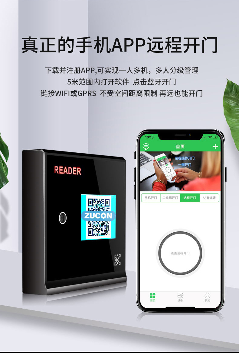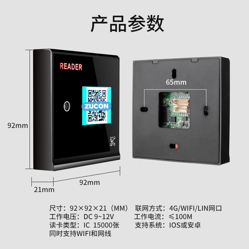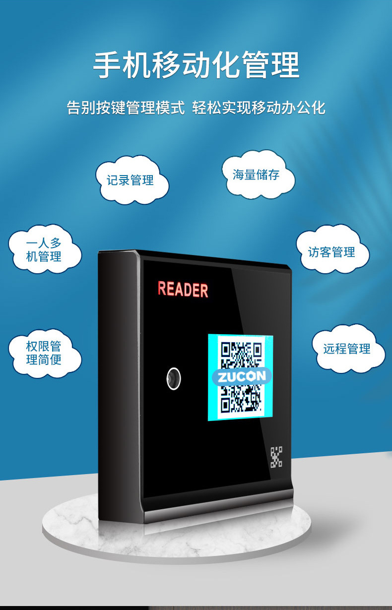 ZUCON祖程FV005二維碼藍牙ic刷卡門禁手機app遠程開門門禁系統一體機