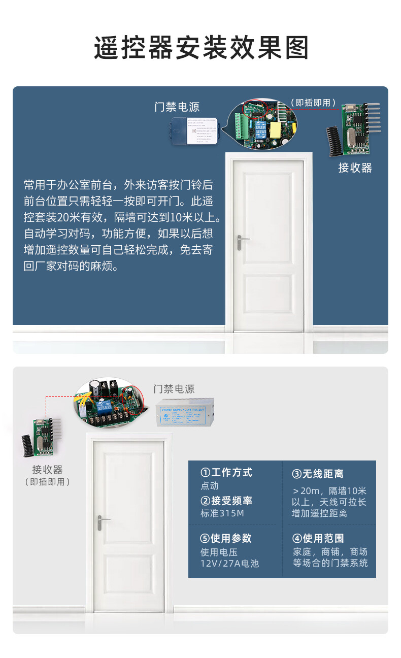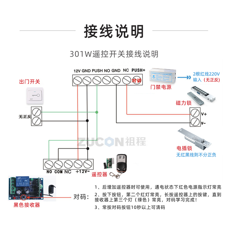 ZUCON祖程K50門禁系統套裝配套遙控器 即插即用遙控開關 電子遙控器315M學習型