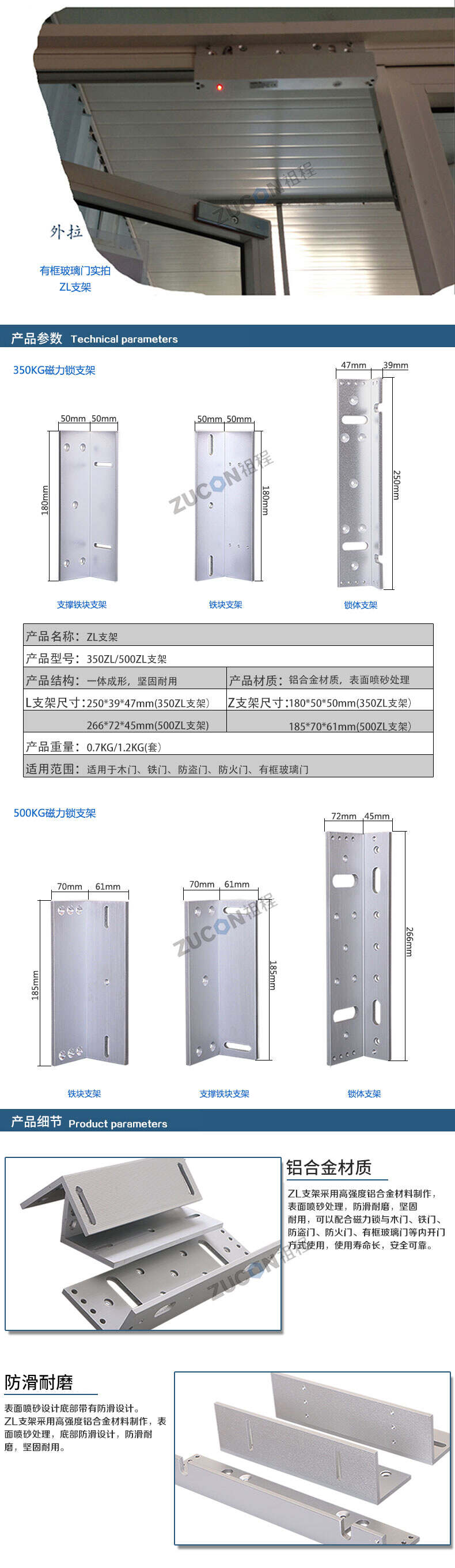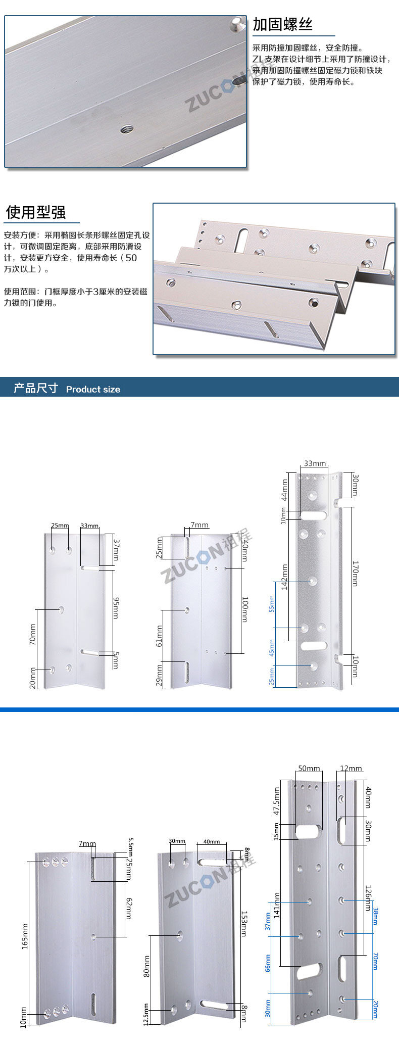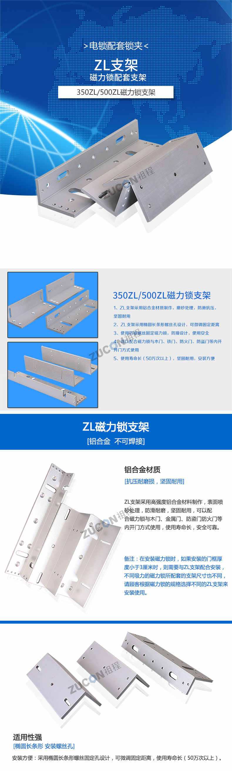 ZUCON祖程 磁力鎖ZL支架350KG500KG磁力鎖L型支架 磁力鎖配套支架