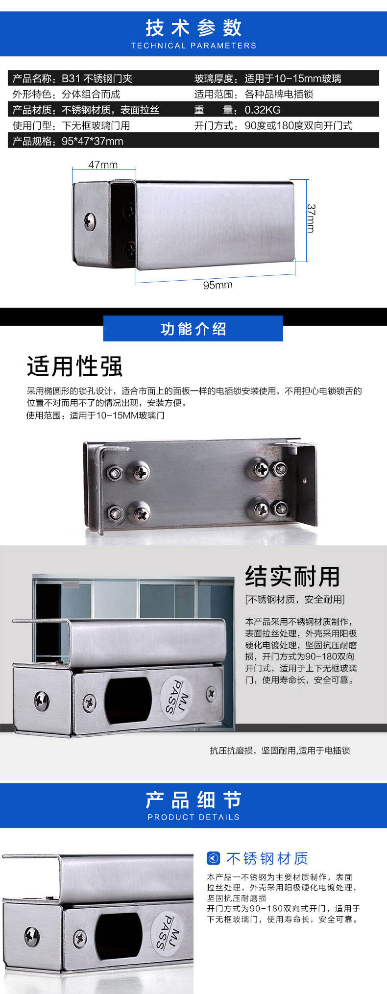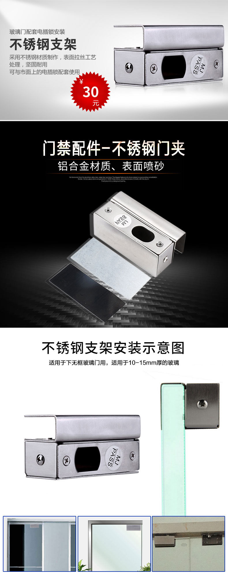 ZUCON祖程 電插鎖不銹鋼支架 電插鎖小門夾 玻璃門不銹鋼門夾
