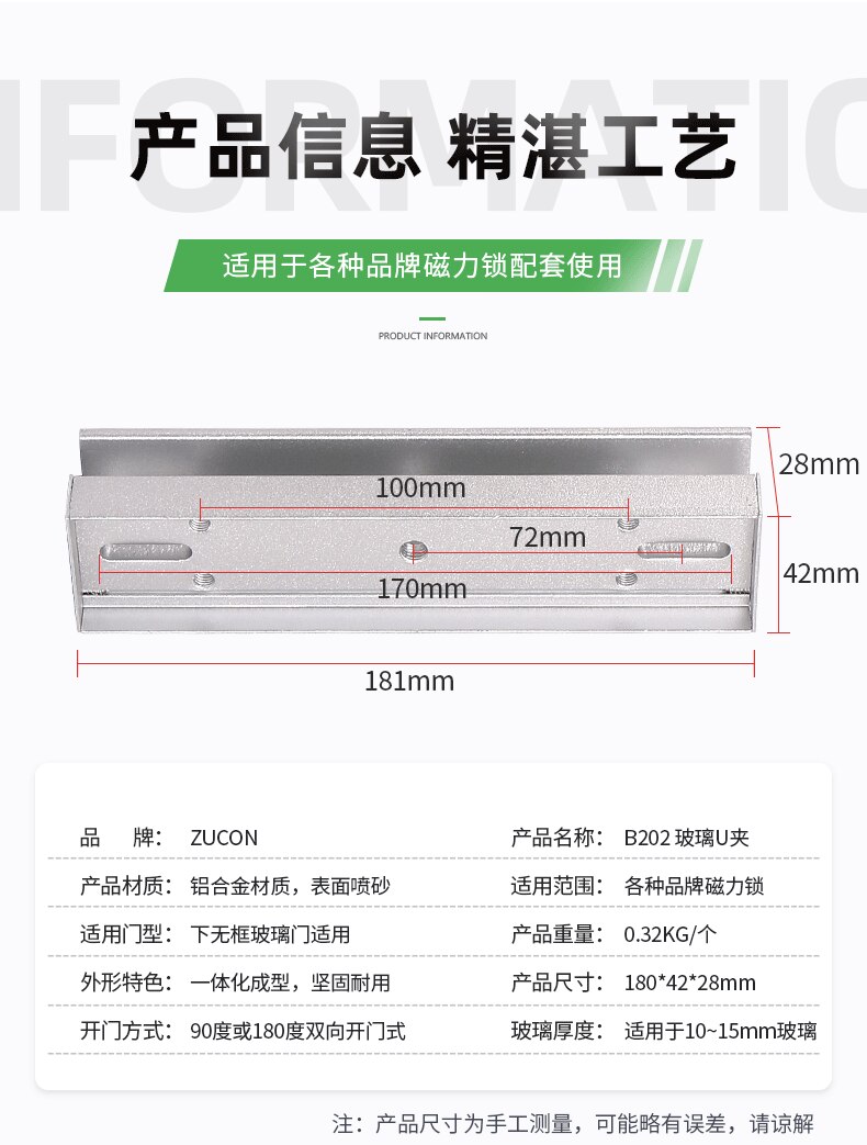 ZUCON祖程磁力鎖U型夾 280公斤磁力鎖U型支架 磁力鎖玻璃門夾 磁力鎖配套門夾