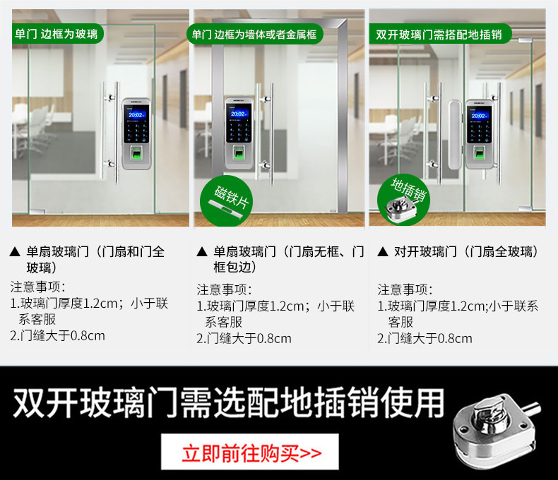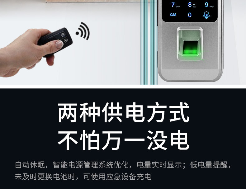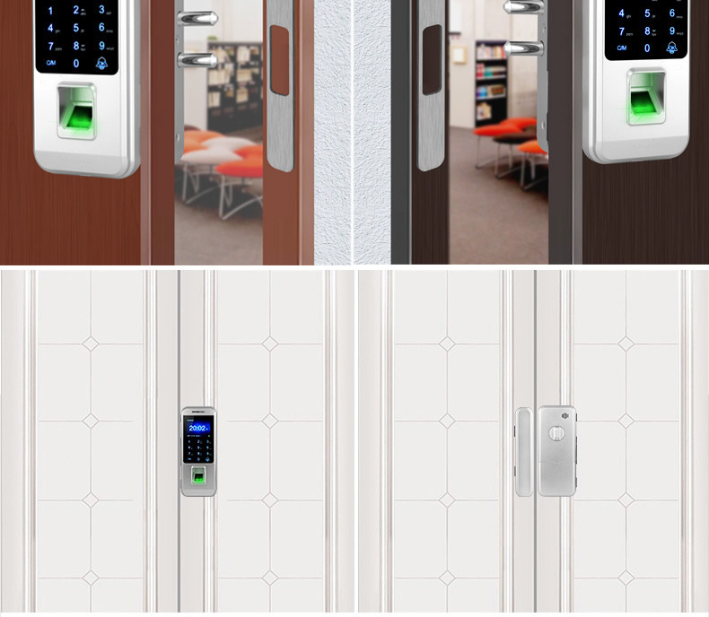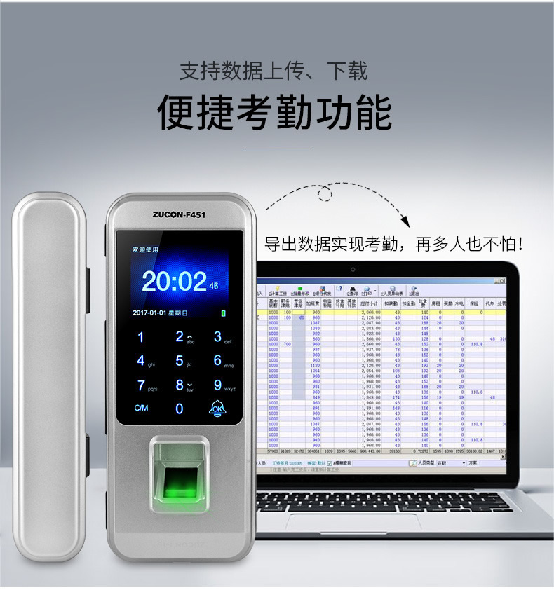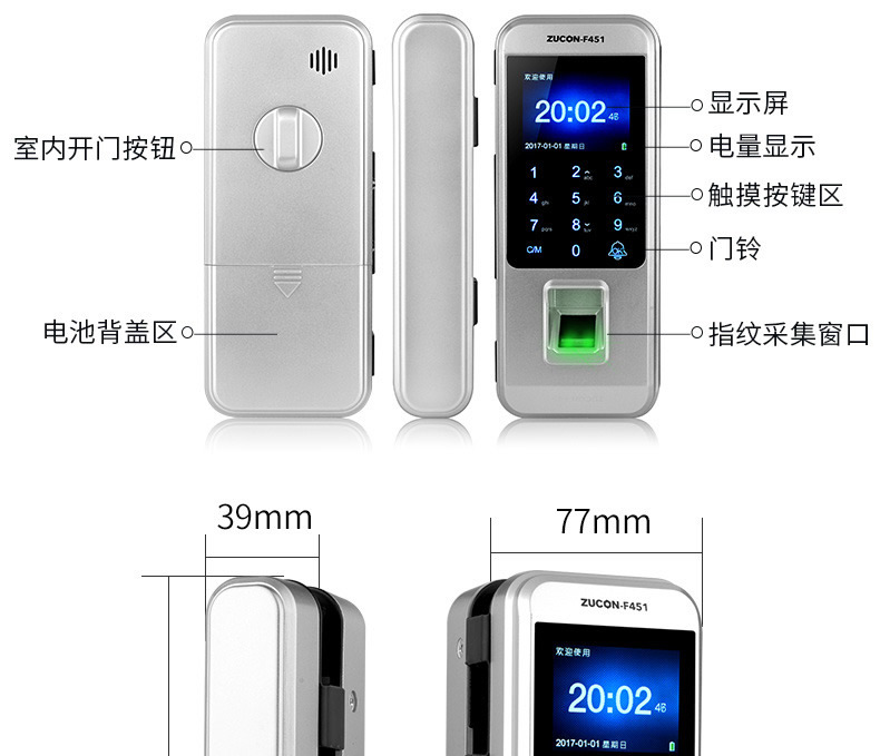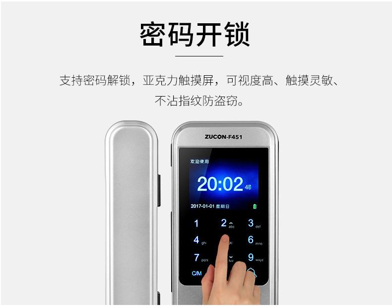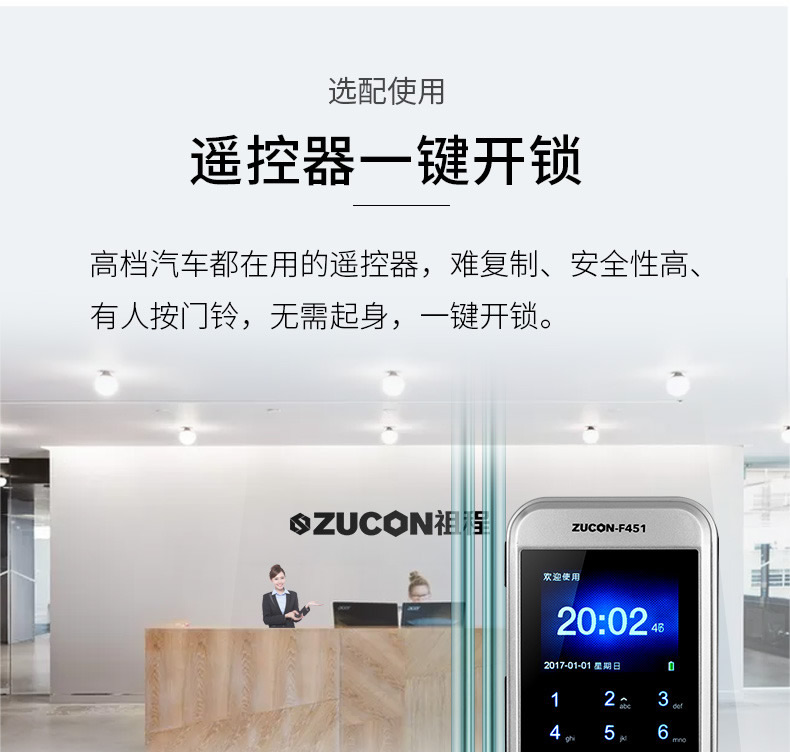 ZUCON祖程F451玻璃門指紋鎖免開孔雙門辦公室考勤電子智能門鎖密碼鎖