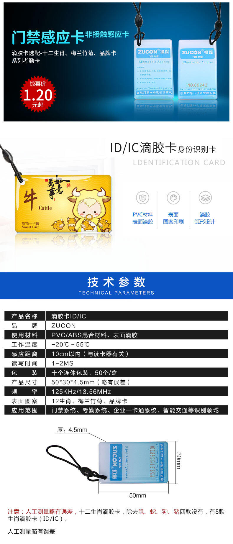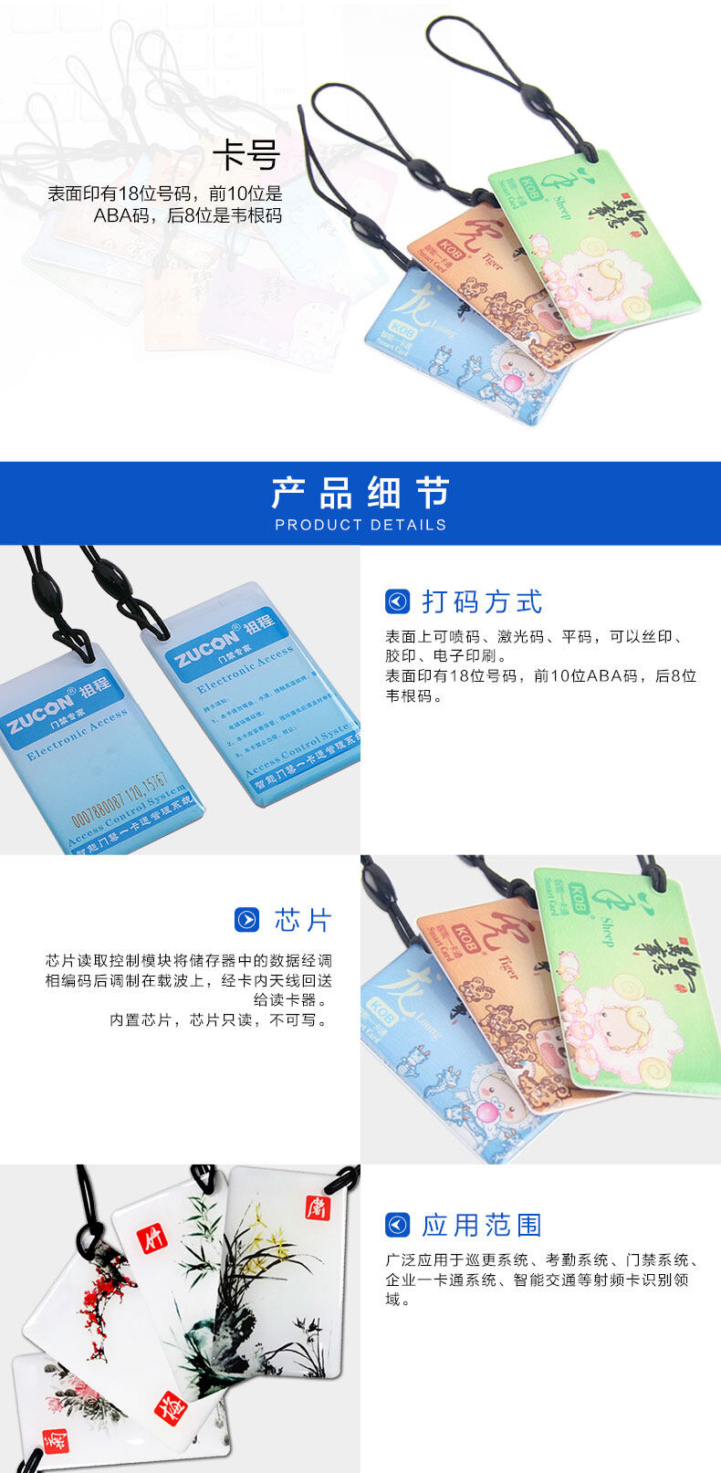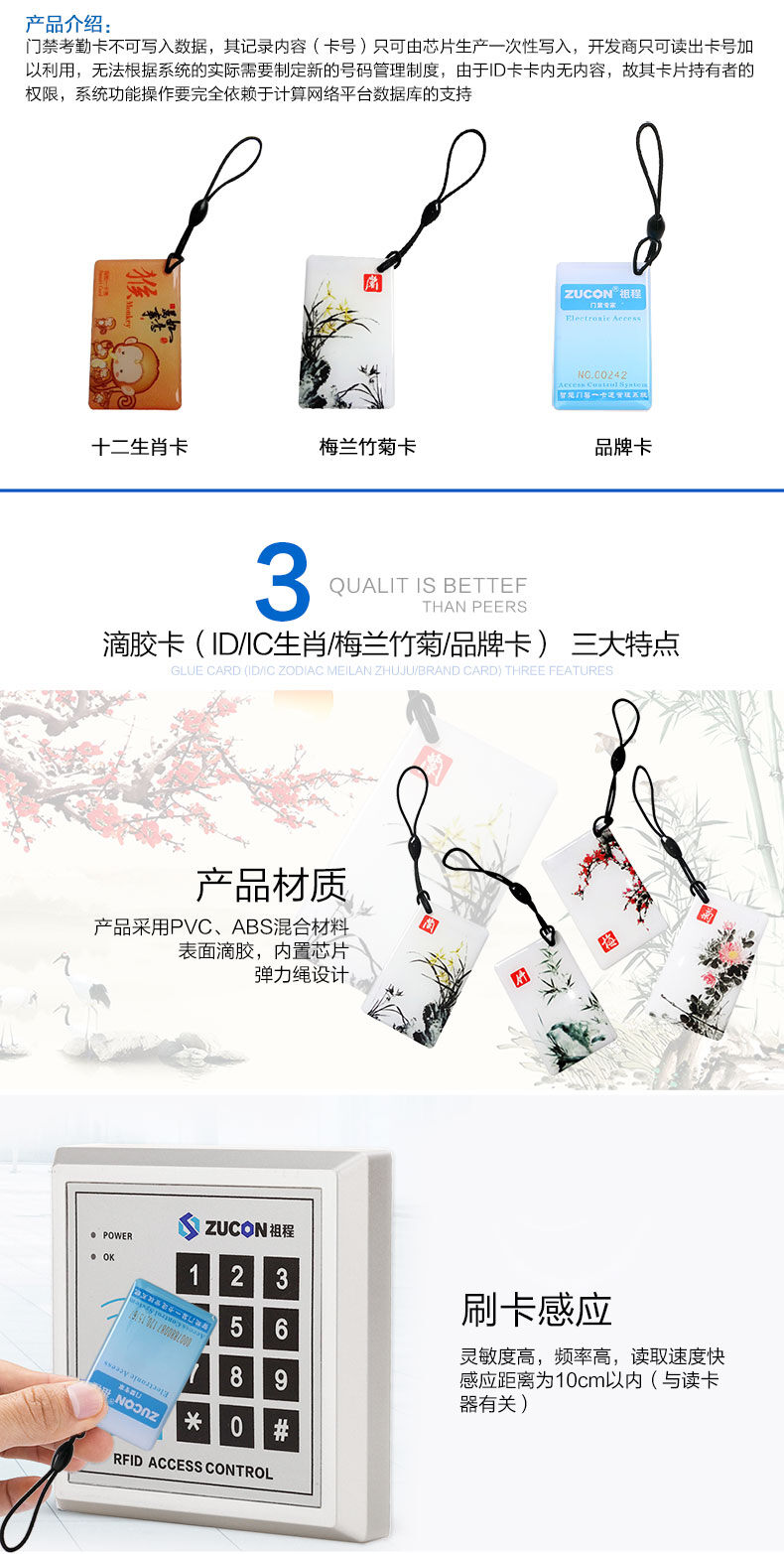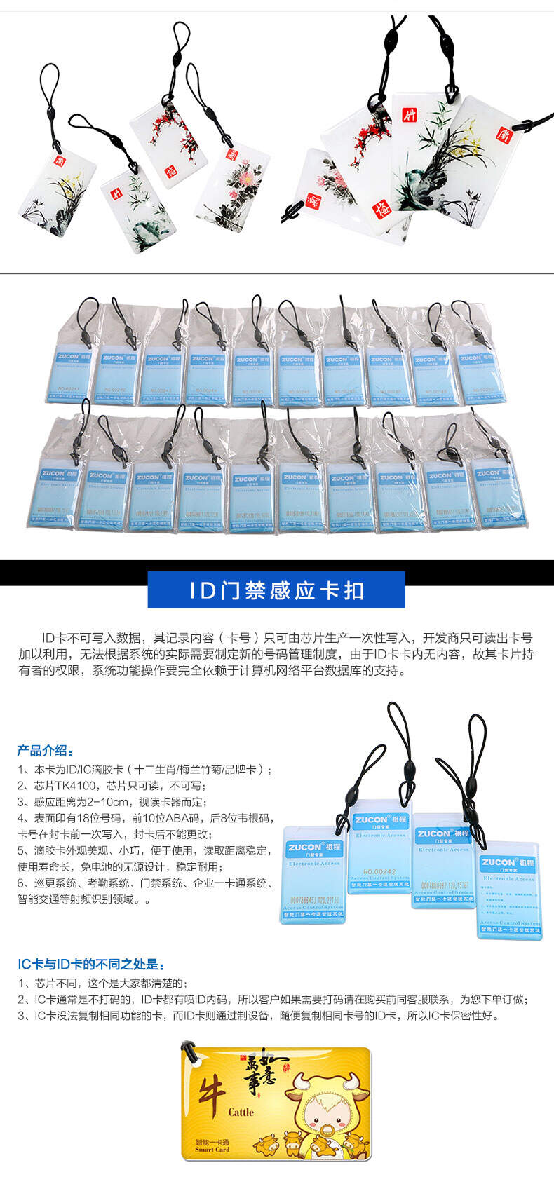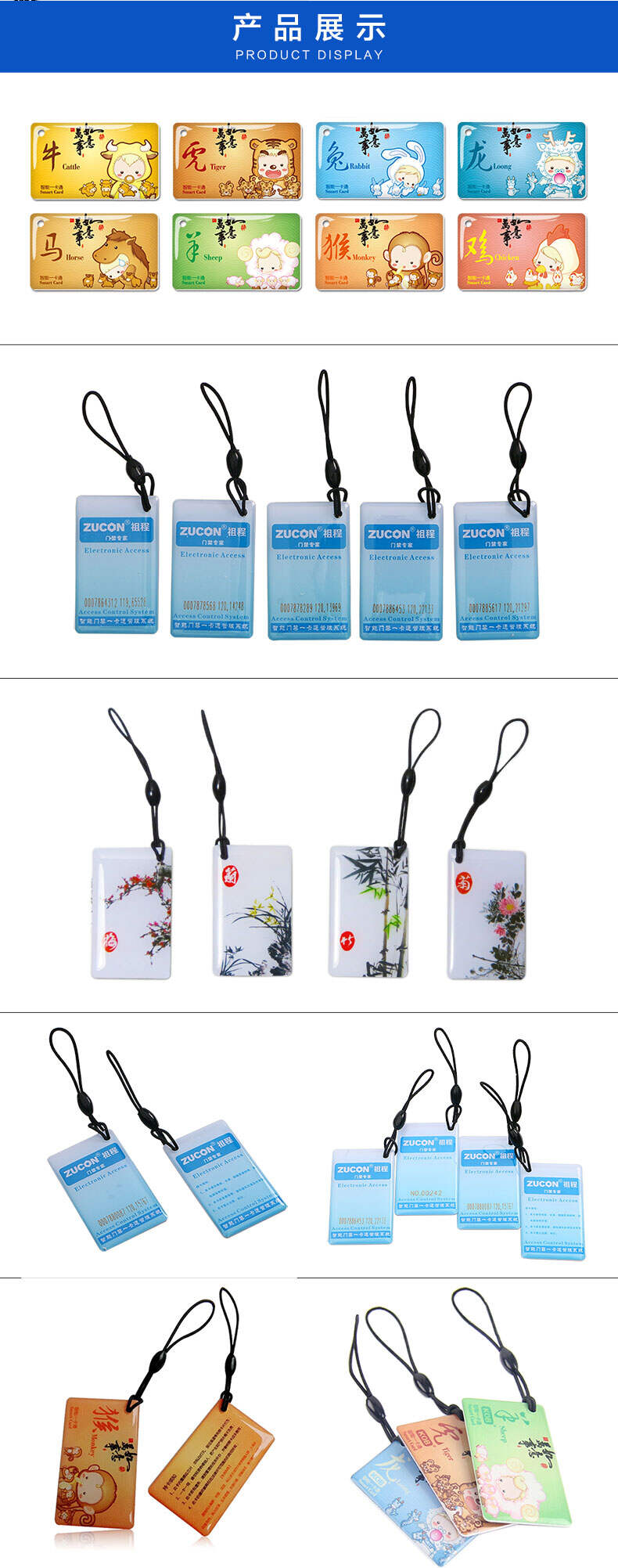 ZUCON祖程生肖卡滴膠感應卡扣門禁系統考勤卡鑰匙掛扣卡ID、IC小卡