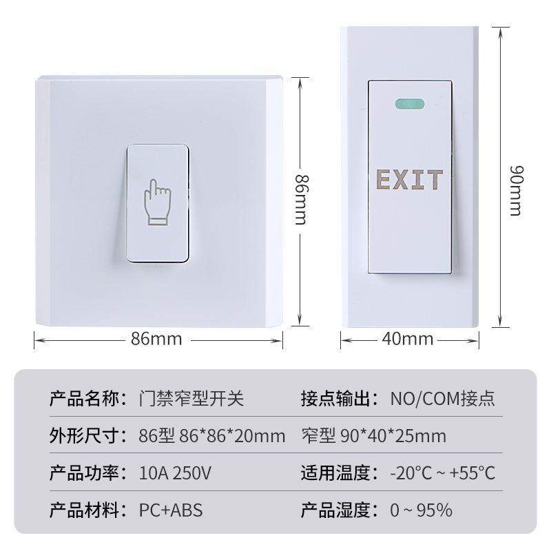 ZUCON祖程K05門禁出門開關(guān) 出門按鈕自動復(fù)位 NO常開型 窄版門禁開關(guān)