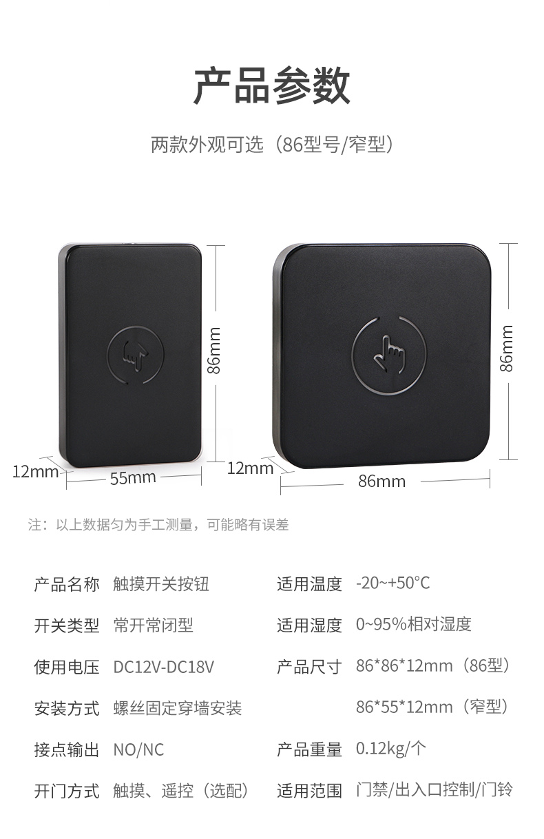 ZUCON祖程K81磨砂門禁觸摸感應開關出門開關遠程遙控電子開門器磨砂86型