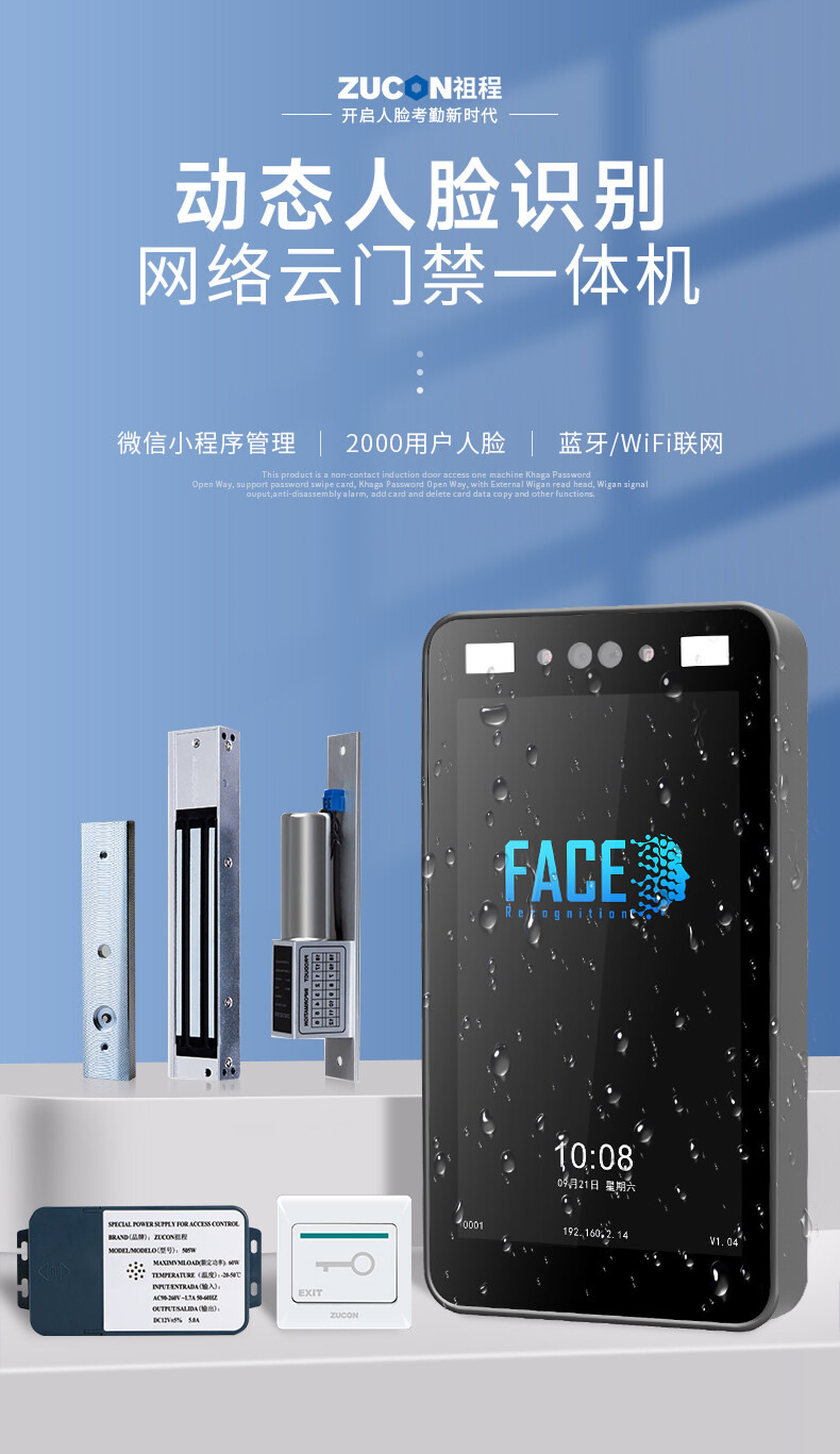ZUCON祖程F41動態人臉識別門禁一體機辦公室玻璃門電子刷臉門禁系統套裝門禁鎖