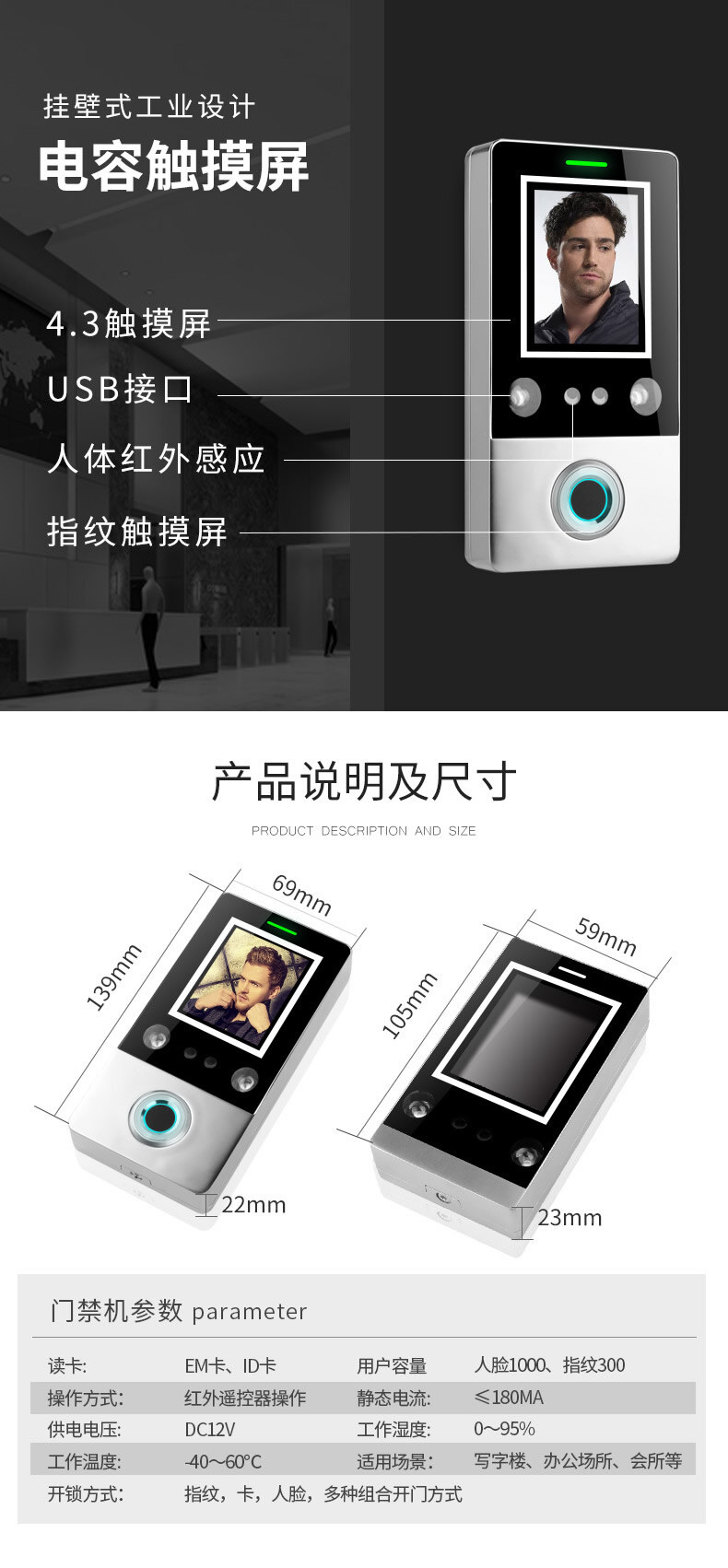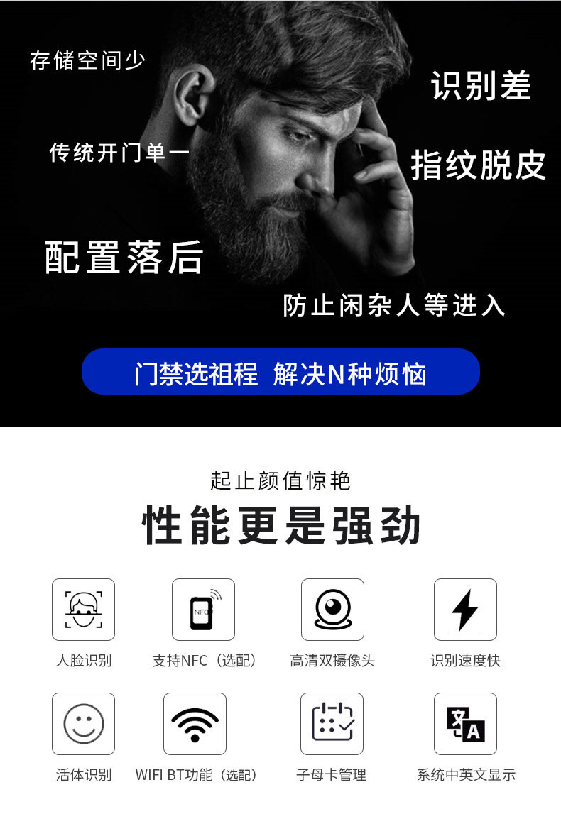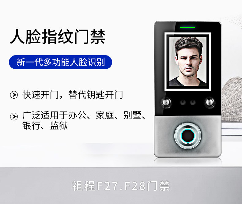 ZUCON祖程F27、F28人臉門禁系統套裝室外人臉識別門禁機金屬人臉指紋控制器