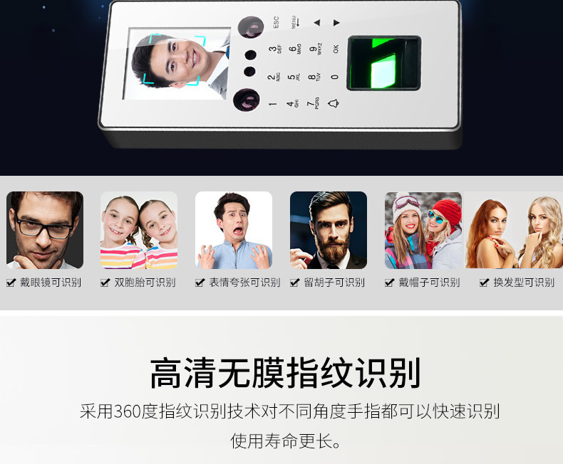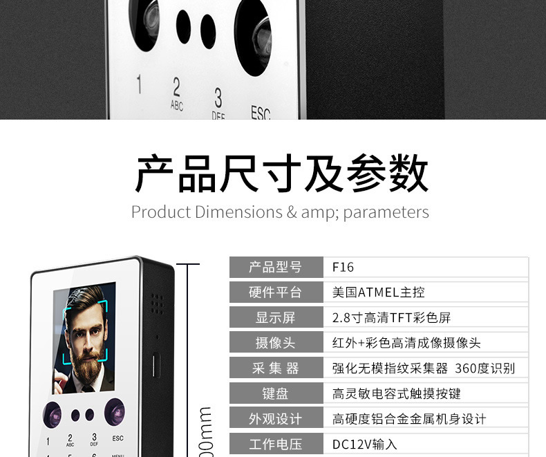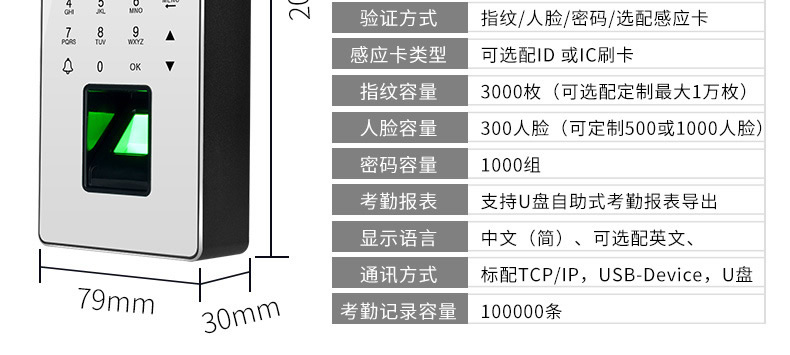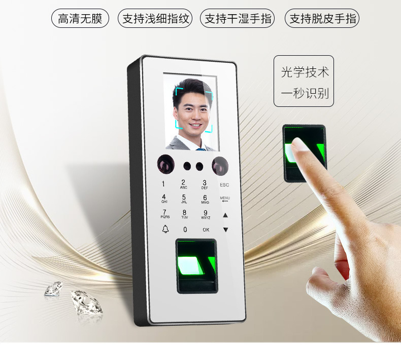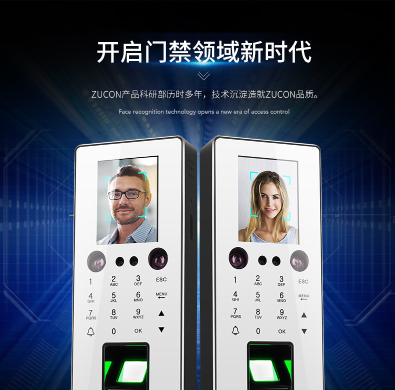 ZUCON祖程F16人臉識別門禁密碼指紋門禁考勤機指紋人臉一體機上班打卡機