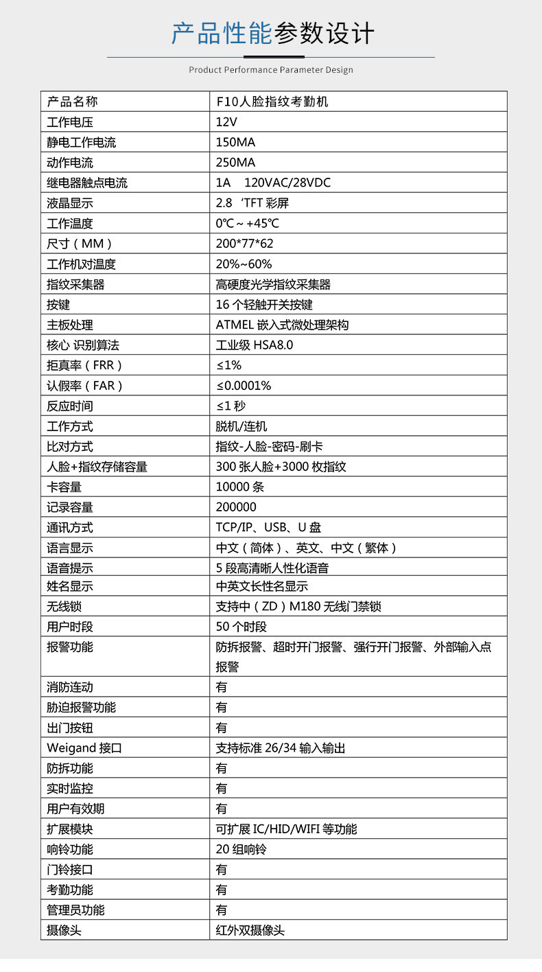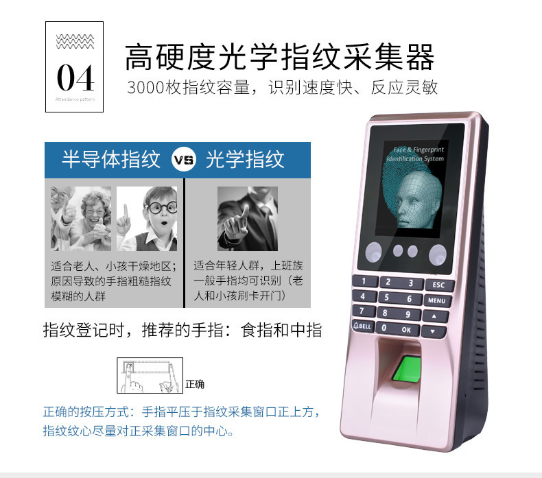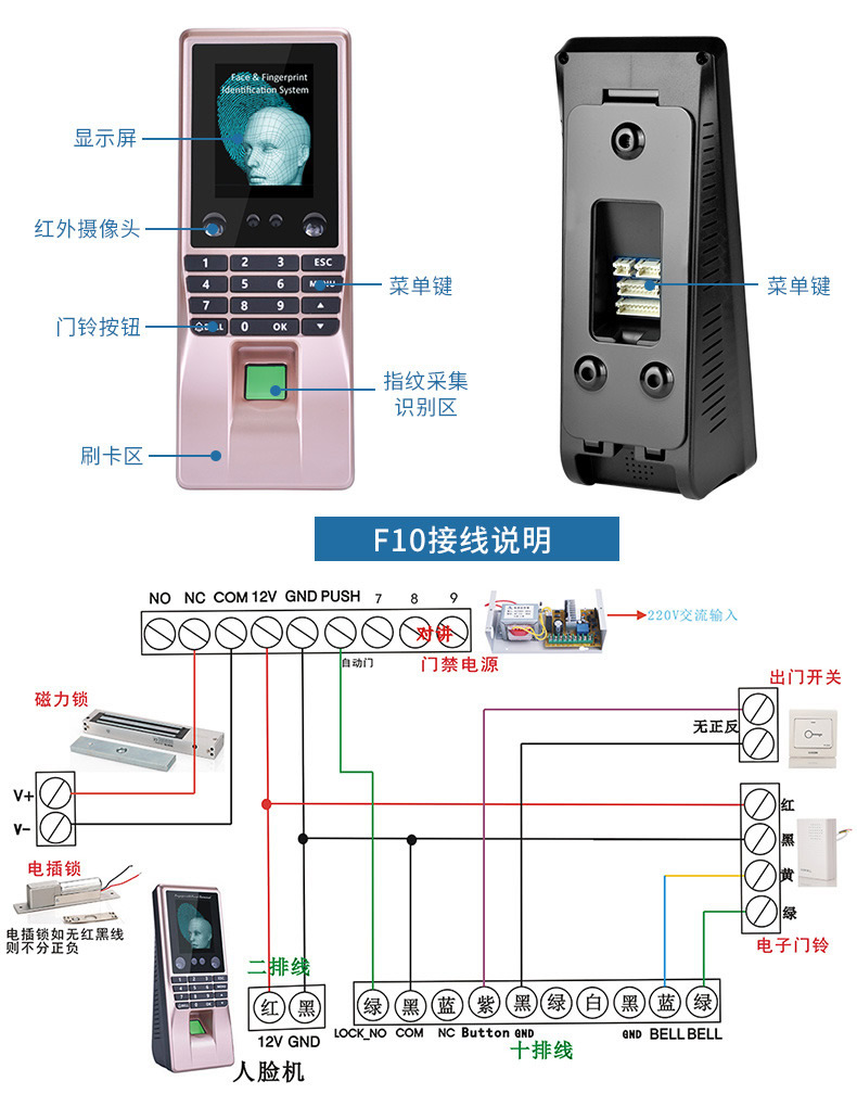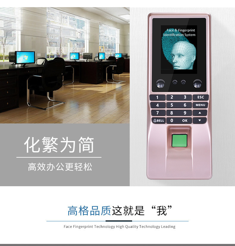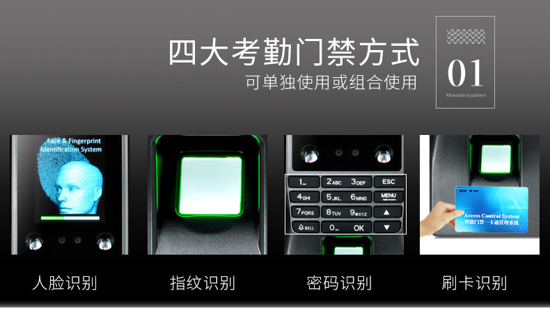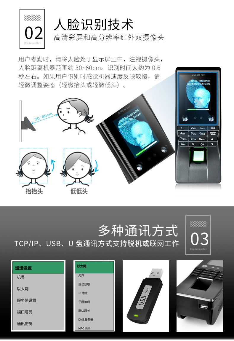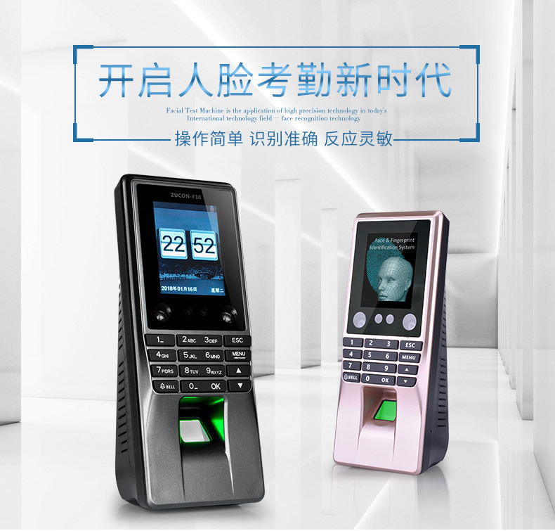 ZUCON祖程F10人臉識別考勤系統人臉指紋門禁系統指紋機刷卡器一體機