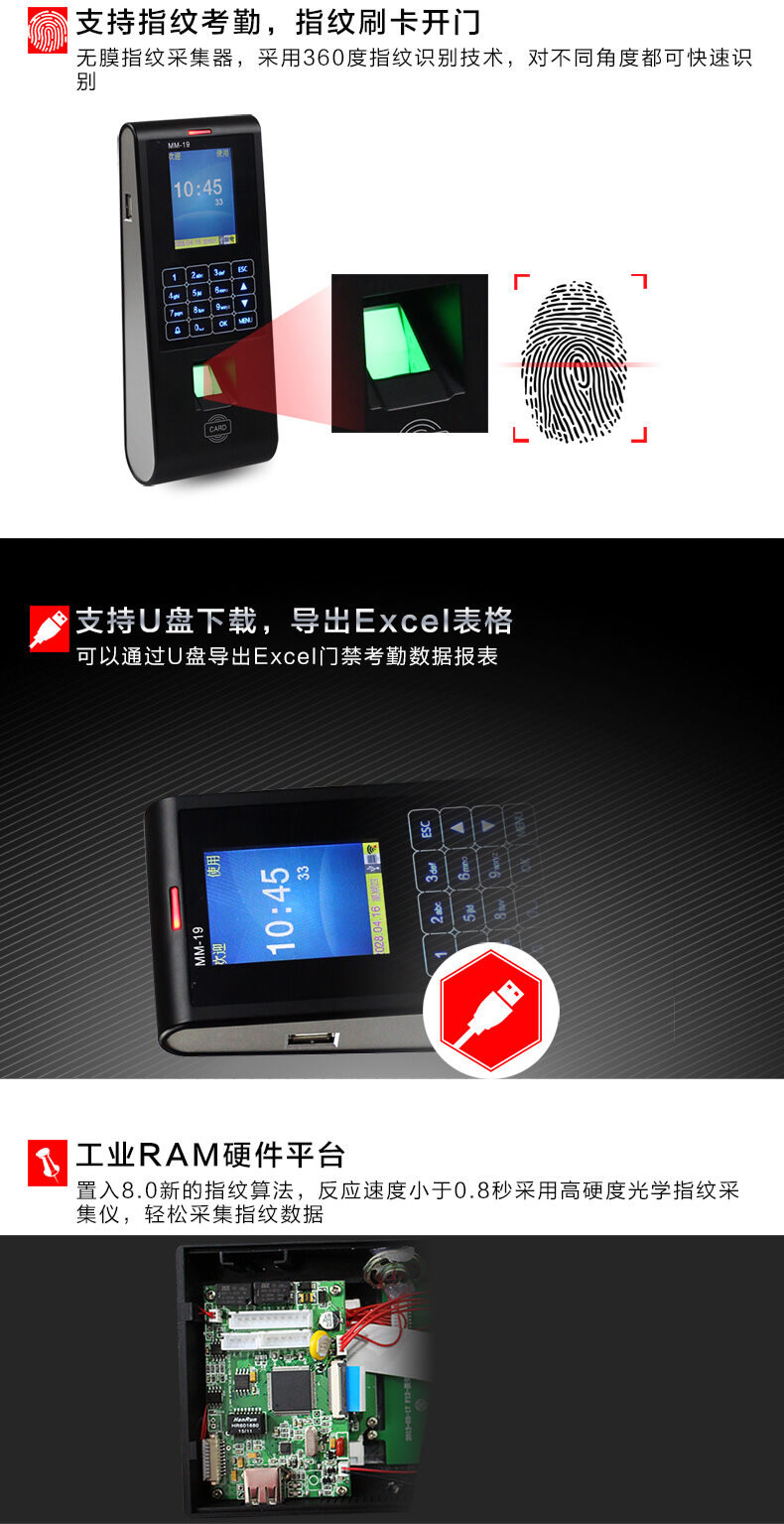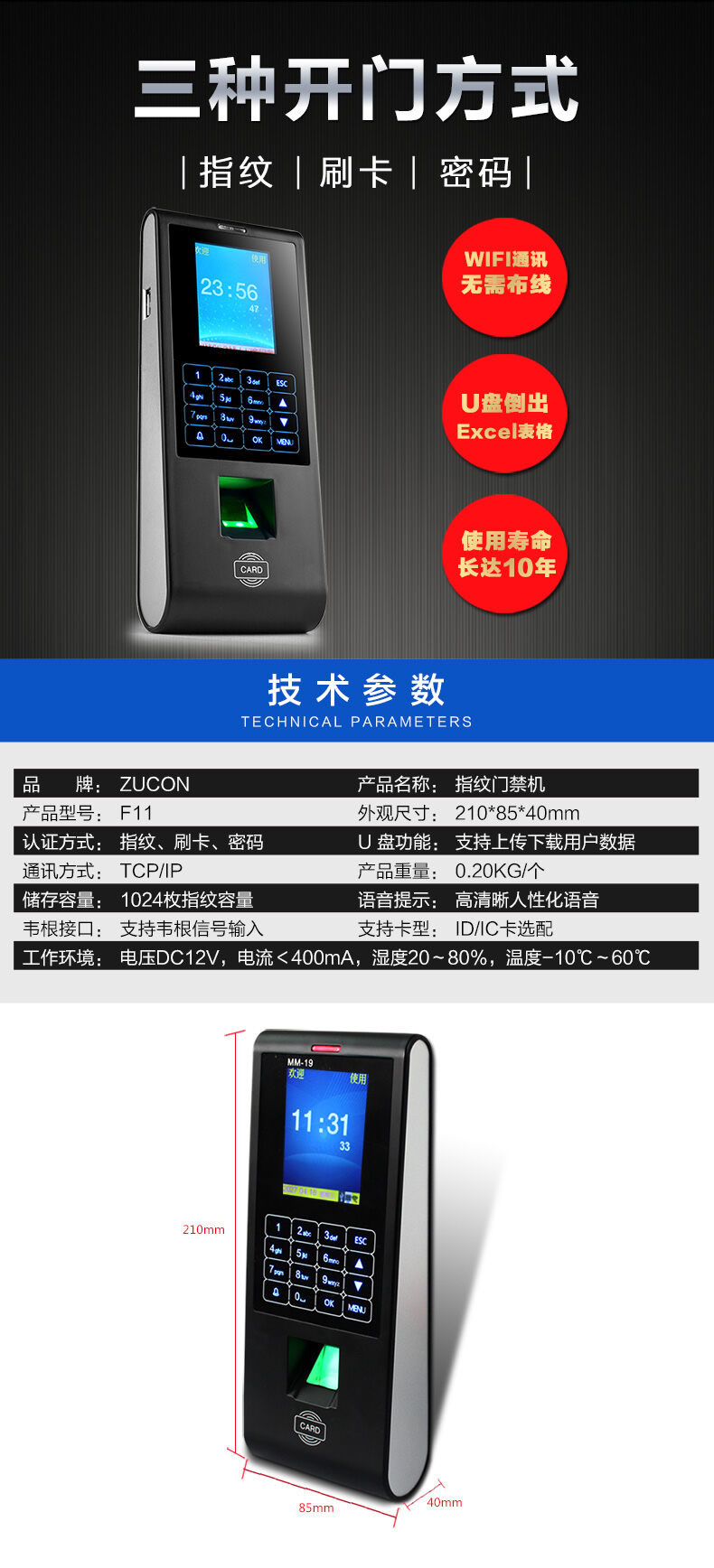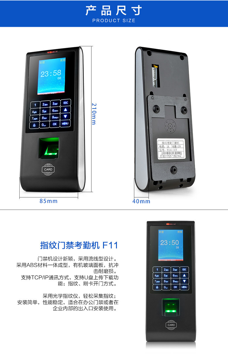 ZUCON祖程H11指紋刷卡密碼門禁考勤主機(jī)網(wǎng)絡(luò)U盤下載數(shù)據(jù)簽到上班打卡