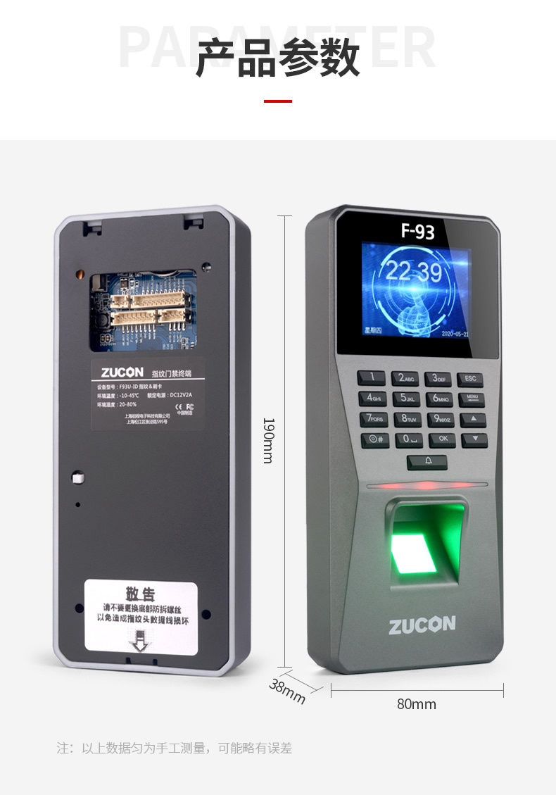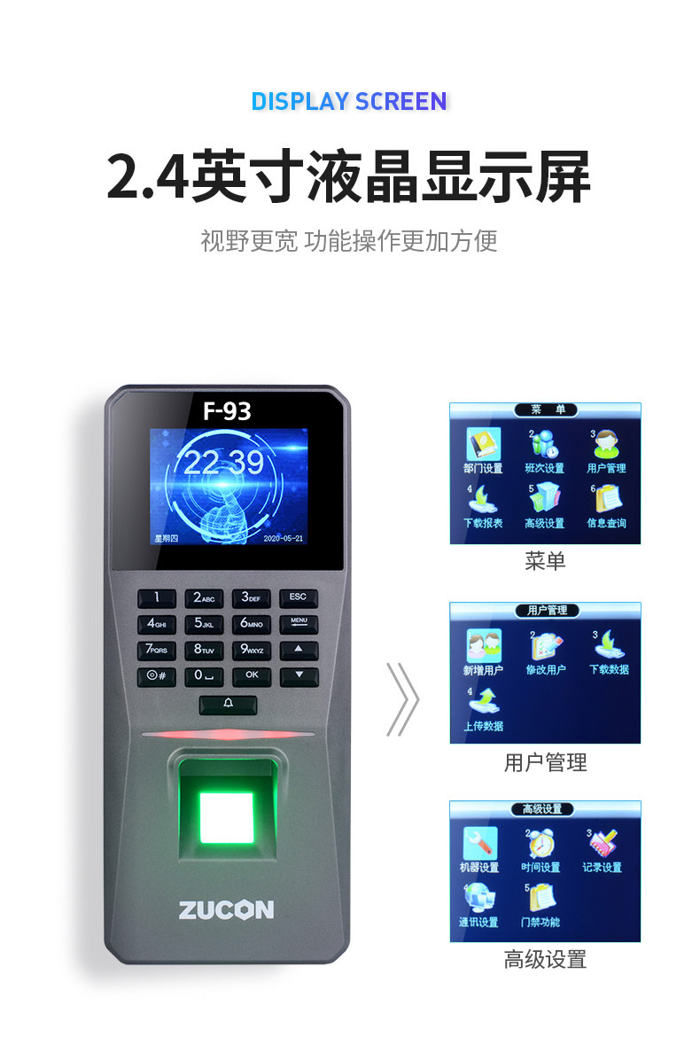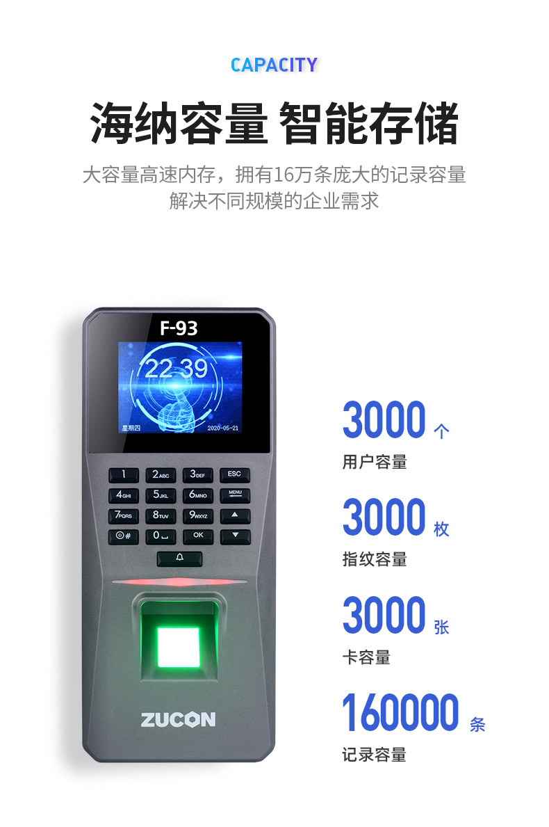 ZUCON祖程F93門(mén)禁一體機(jī)指紋刷卡密碼門(mén)禁系統(tǒng)一體機(jī)考勤電子門(mén)禁主機(jī)