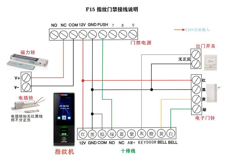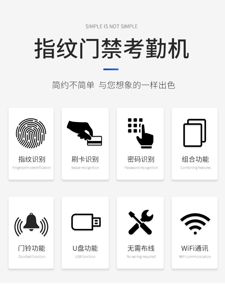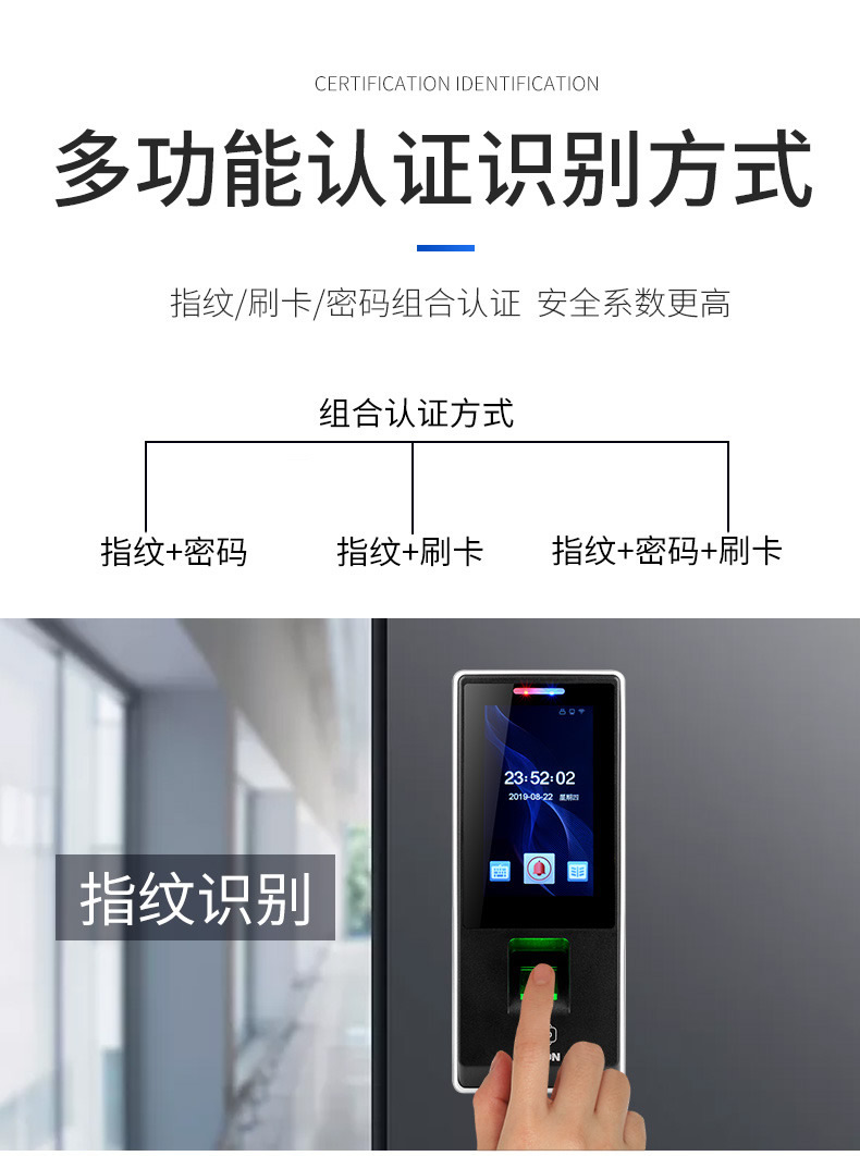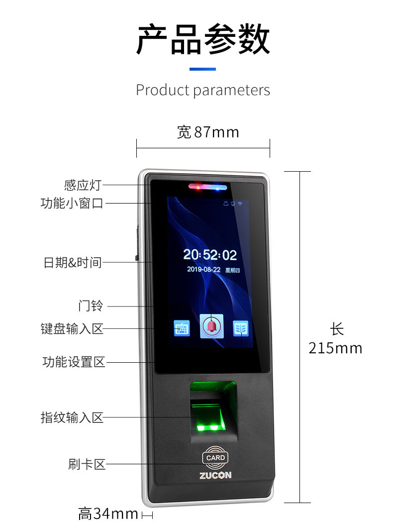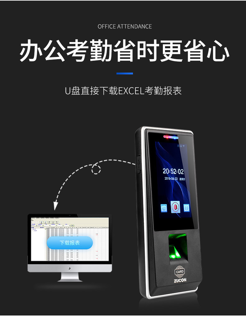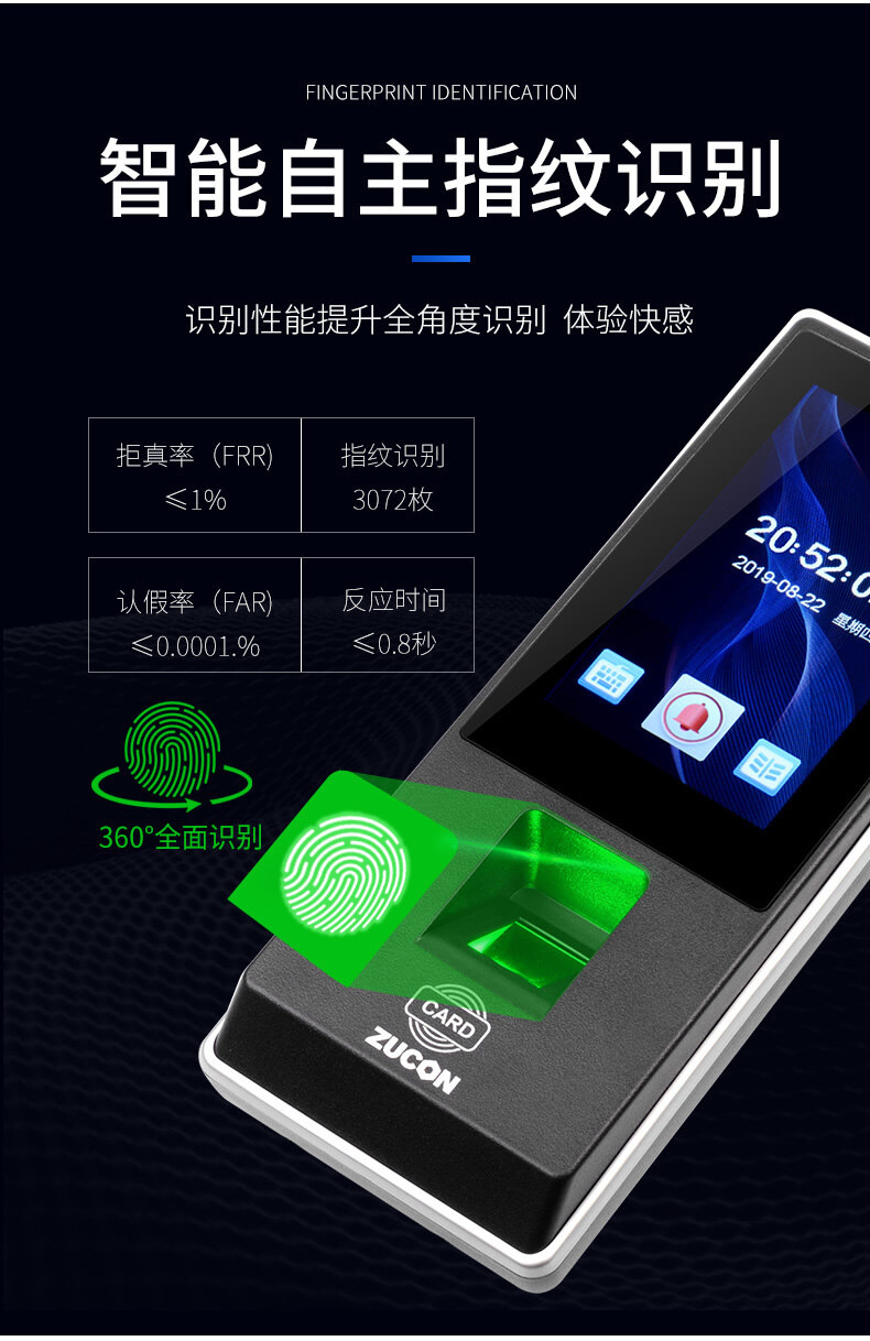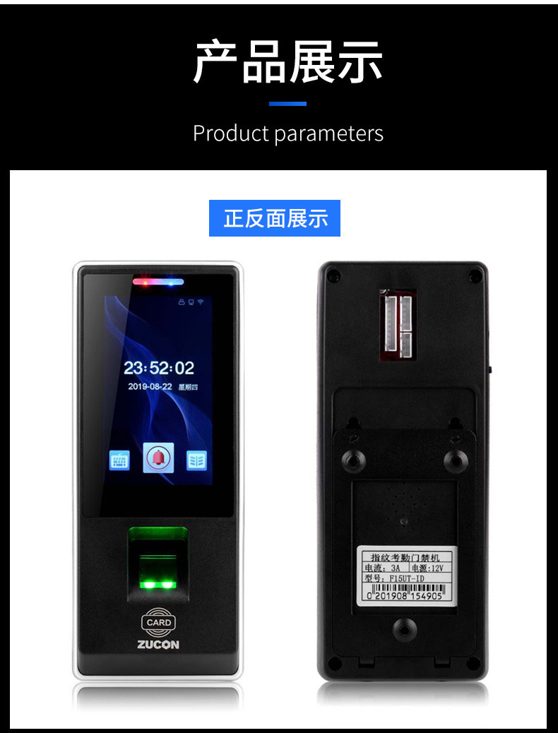 ZUCON祖程F15指紋考勤門禁一體機辦公室密碼刷卡一體機門禁考勤一體機