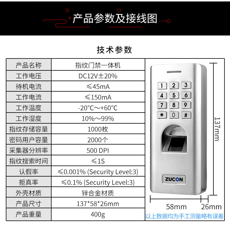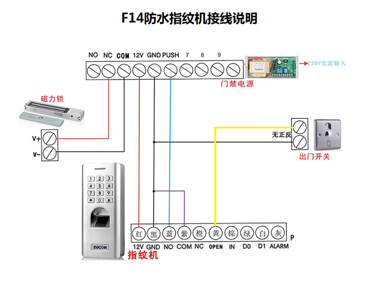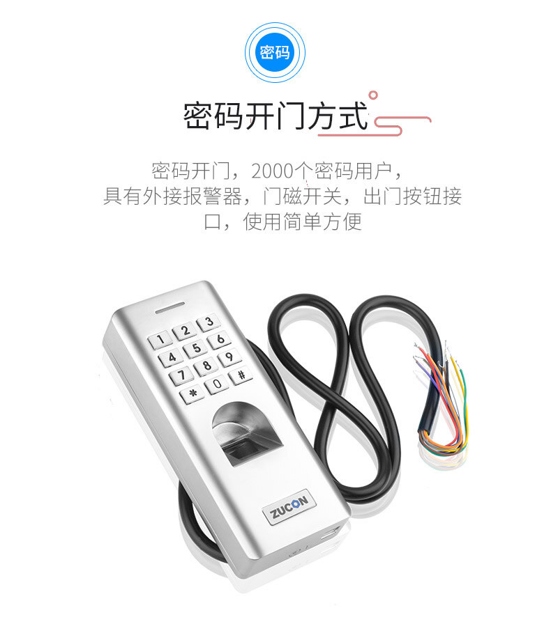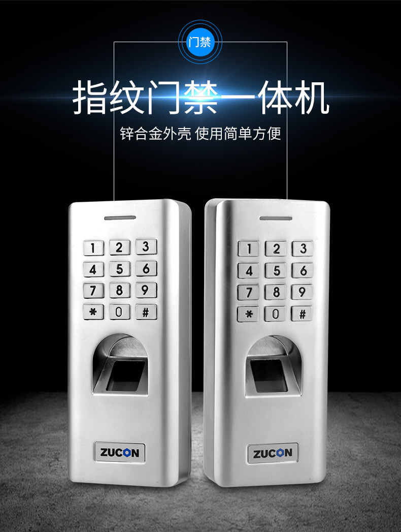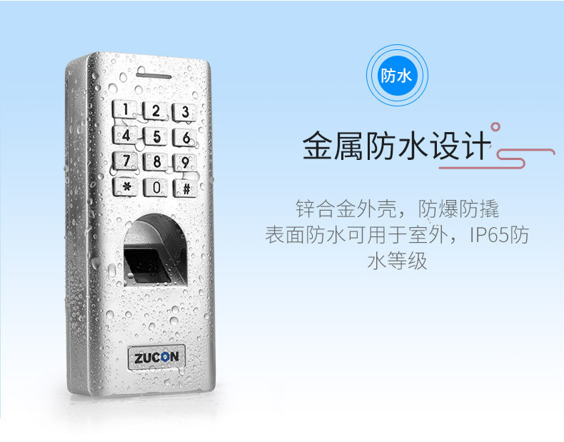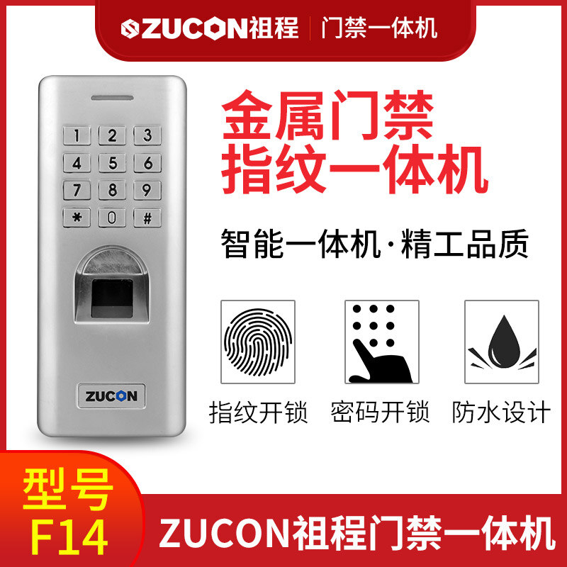 ZUCON祖程F14門禁系統防水指紋一體機 密碼開鎖 室外防水指紋機